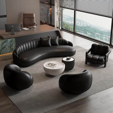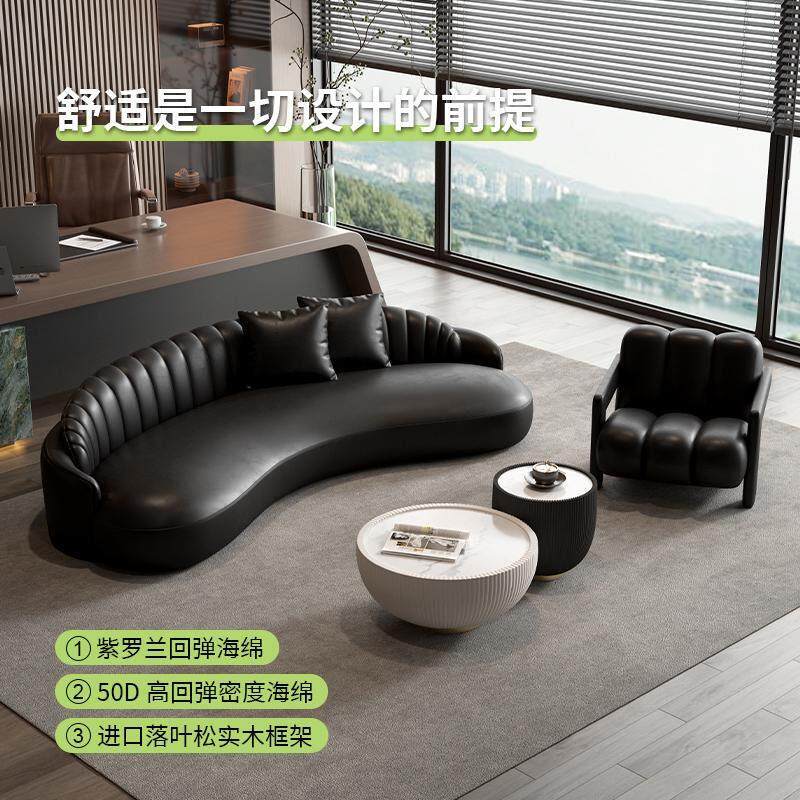 轻奢办公沙发皮艺客厅办公室美容院服装店铺休息区接待现代简约