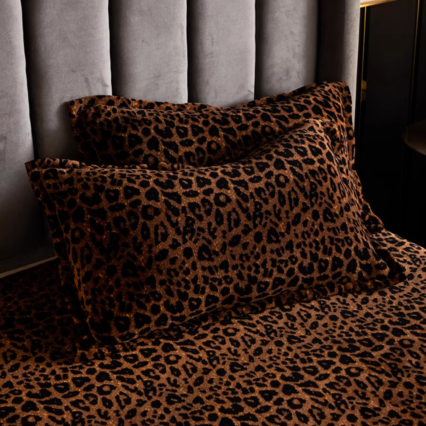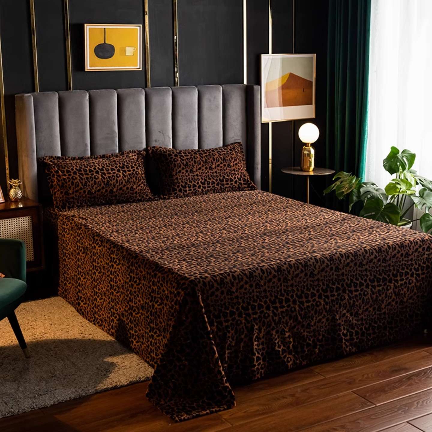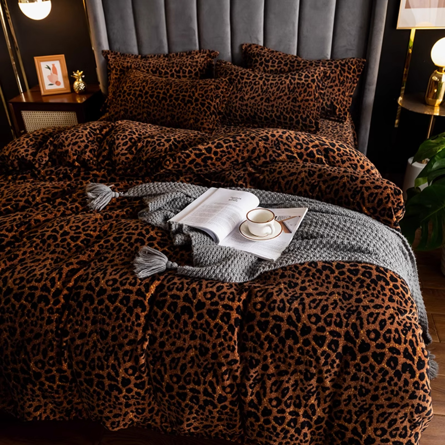 北欧轻奢豹纹牛奶绒四件套冬季双面绒床品2026新款珊瑚绒保暖床单