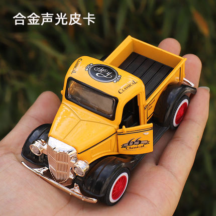 Q版复古老爷车仿真合金汽车模型宝宝声光回力儿童玩具开门皮卡车