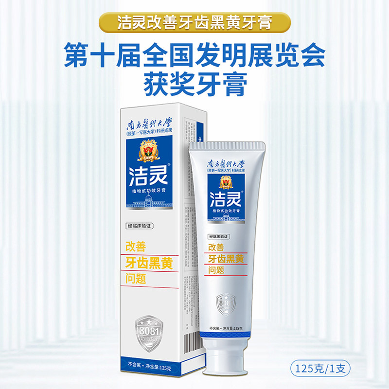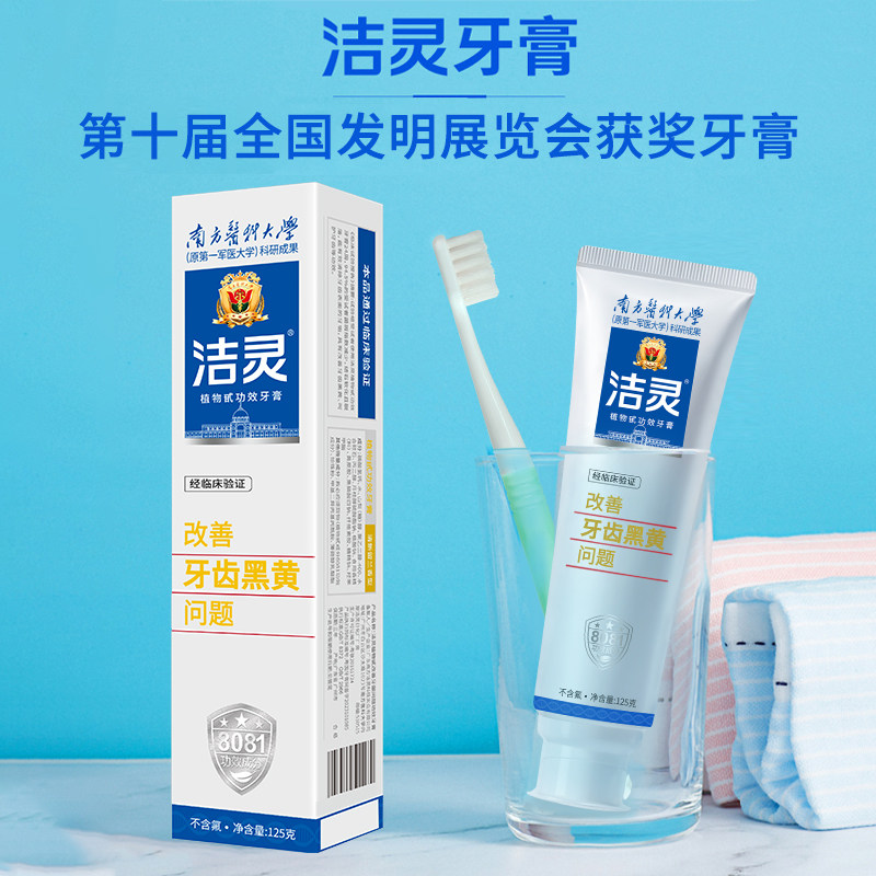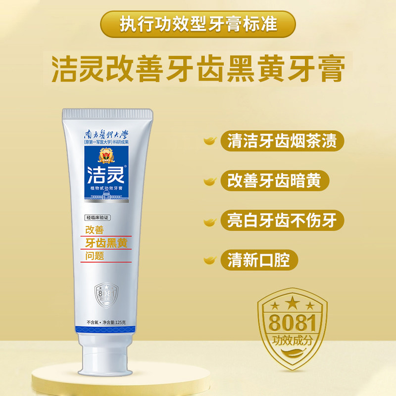 洁灵改善牙齿黑黄问题牙膏125g亮白色清新去烟渍牙石温和口腔护理