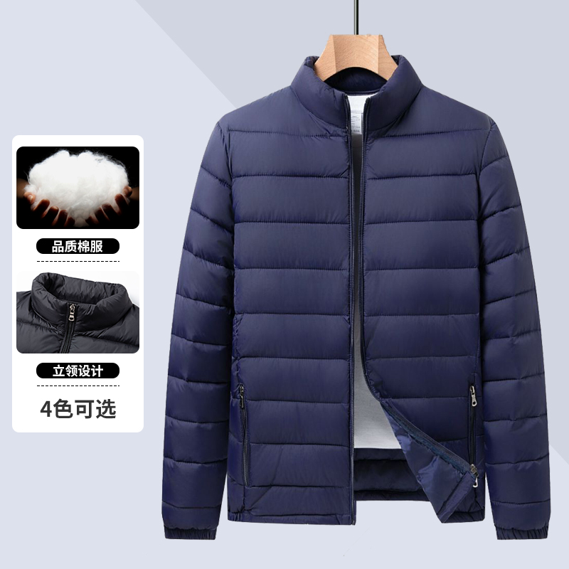 男士休闲外套短款轻薄立领棉服中年秋冬季连帽保暖棉袄百搭爸爸装