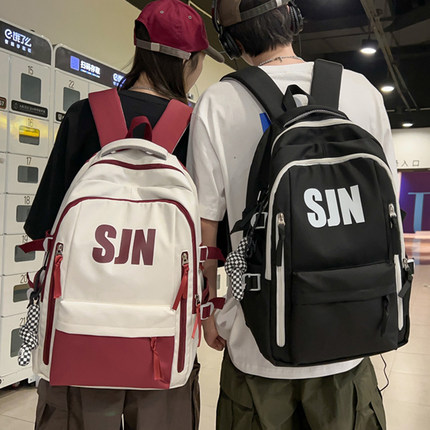 高中学生书包男大学生简约潮酷潮流大容量ins电脑包背包女双肩包