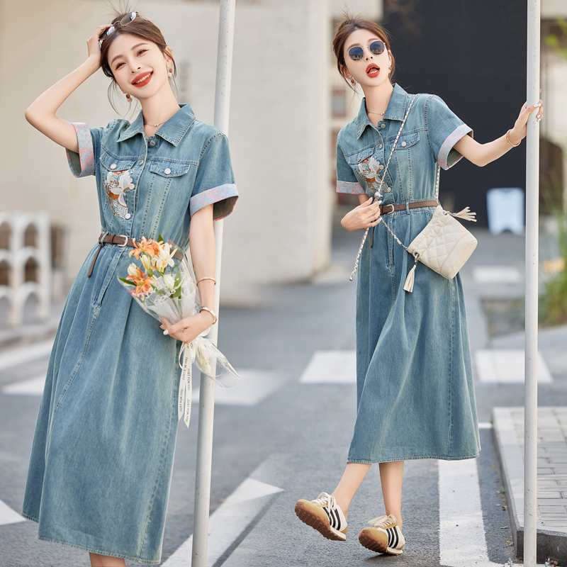 新中式国风牛仔连衣裙女2025夏季新款刺绣高端气质复古裙子中长款