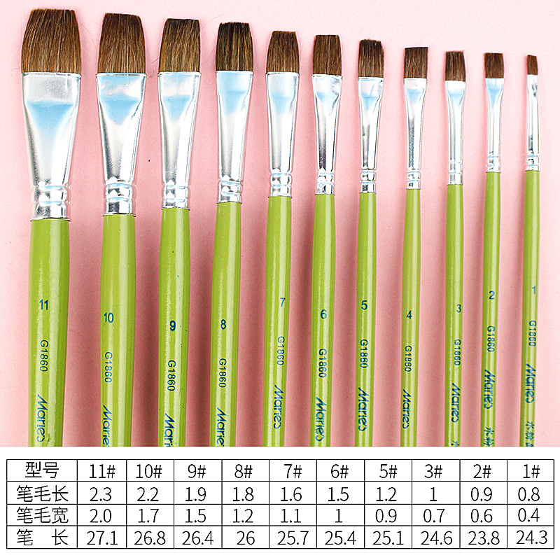 马利牌水粉笔单支狼毫平头水彩画画笔套装初学者丙烯油画刷子全套美术专用绿杆g1860小排笔