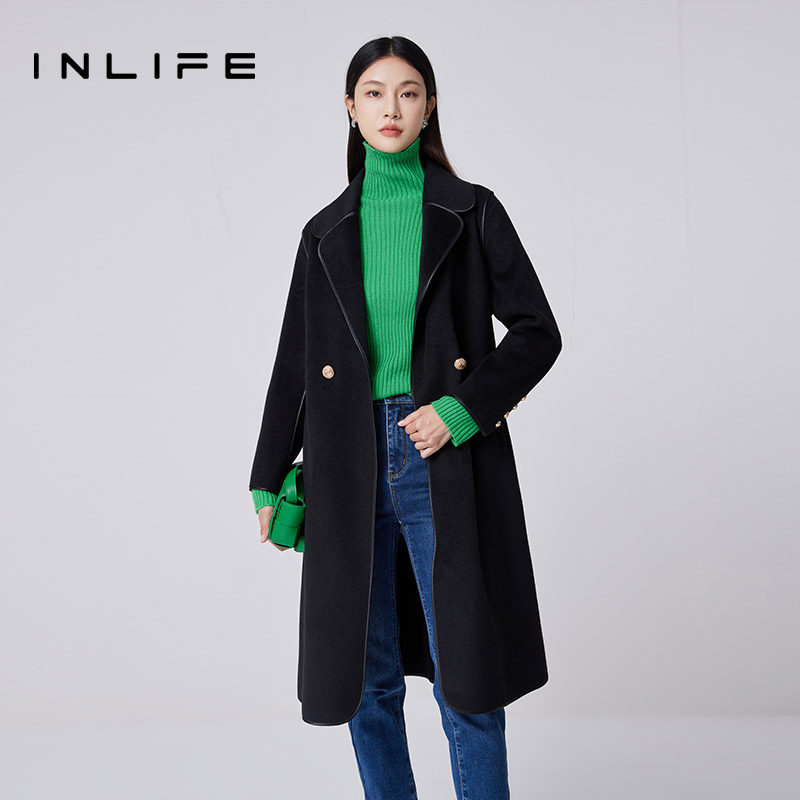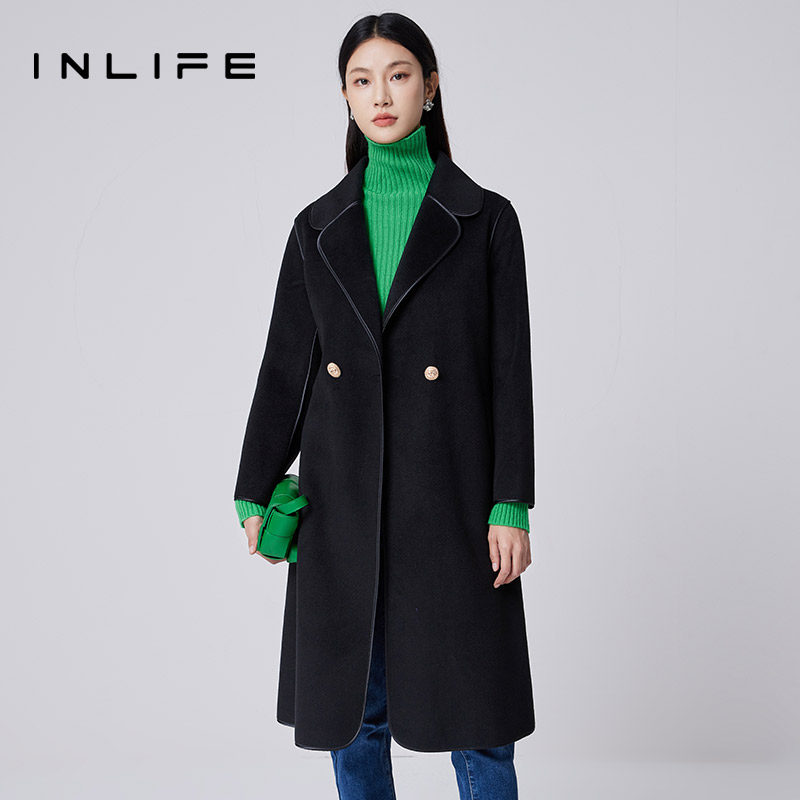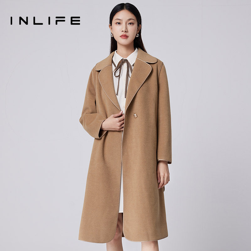 伊纳芙羊毛双面呢大衣女装2025冬新款高级气质中长款宽松呢子外套