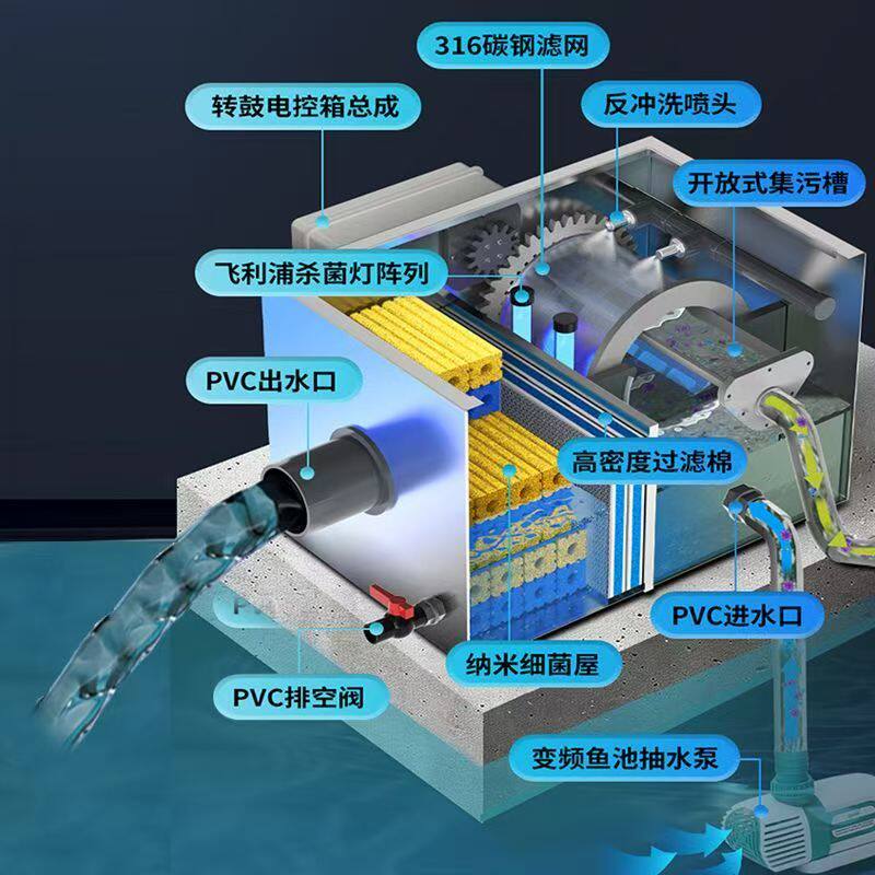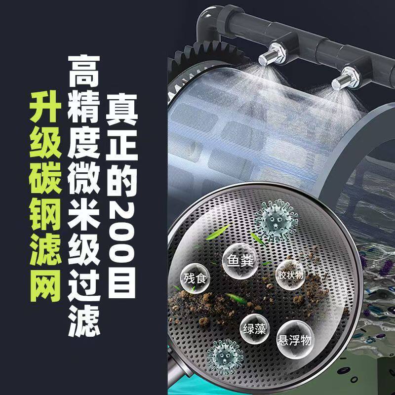 全自动反冲洗转鼓微滤机室内外鱼池过滤器不锈钢循环净化系统设备