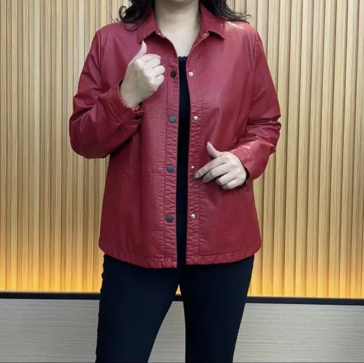 大码皮衣女2023春季新款时尚休闲翻领皮夹克水洗pu皮遮肉显瘦外套