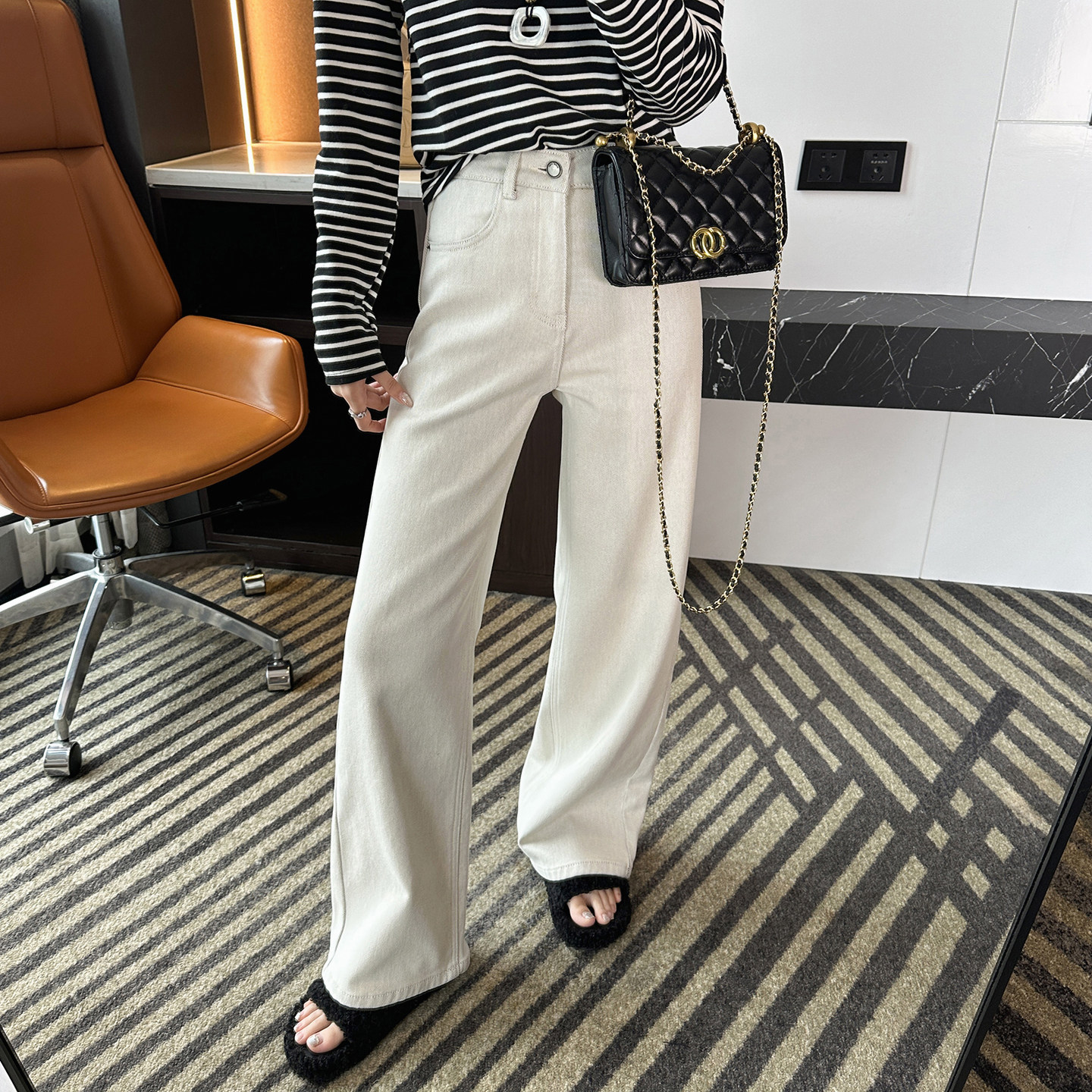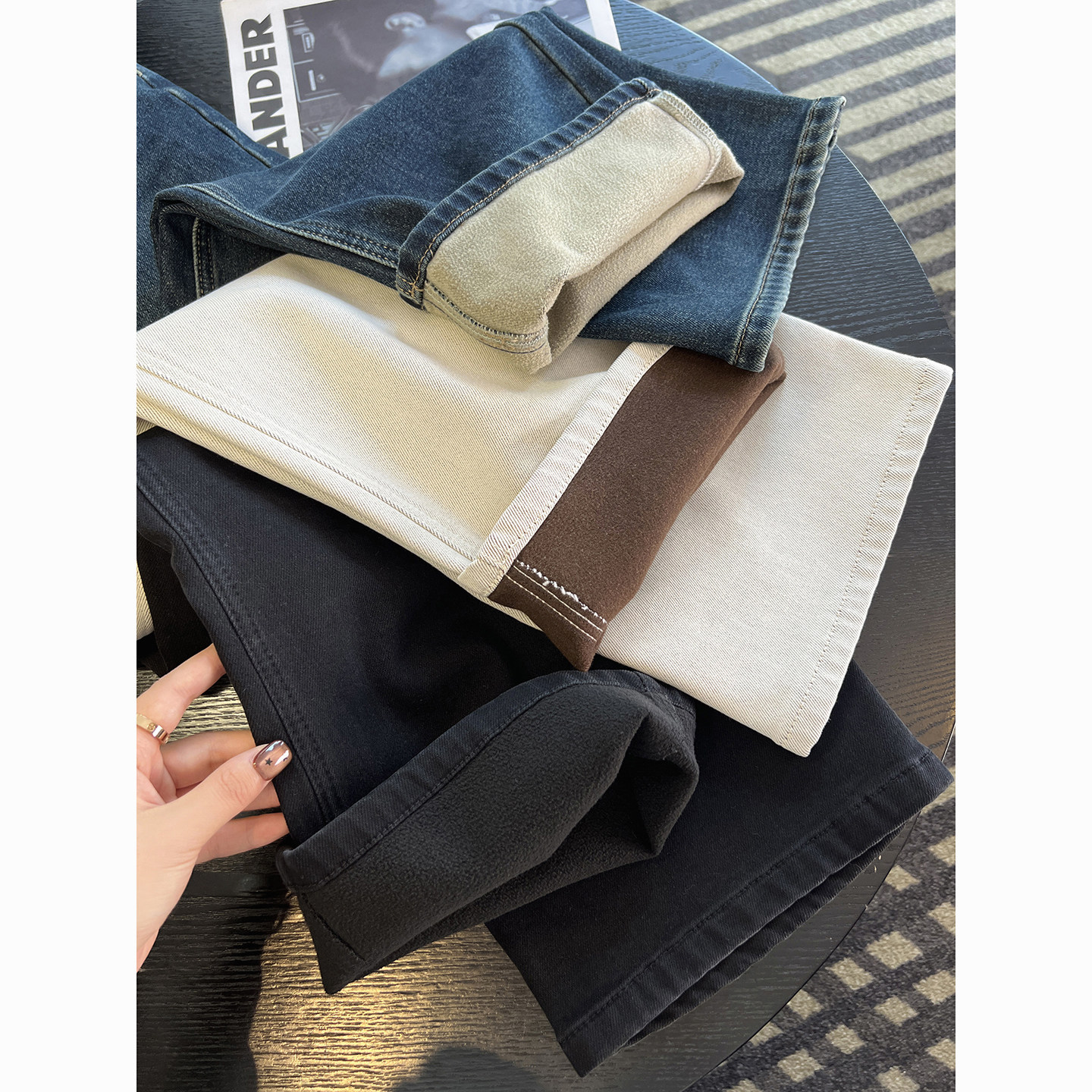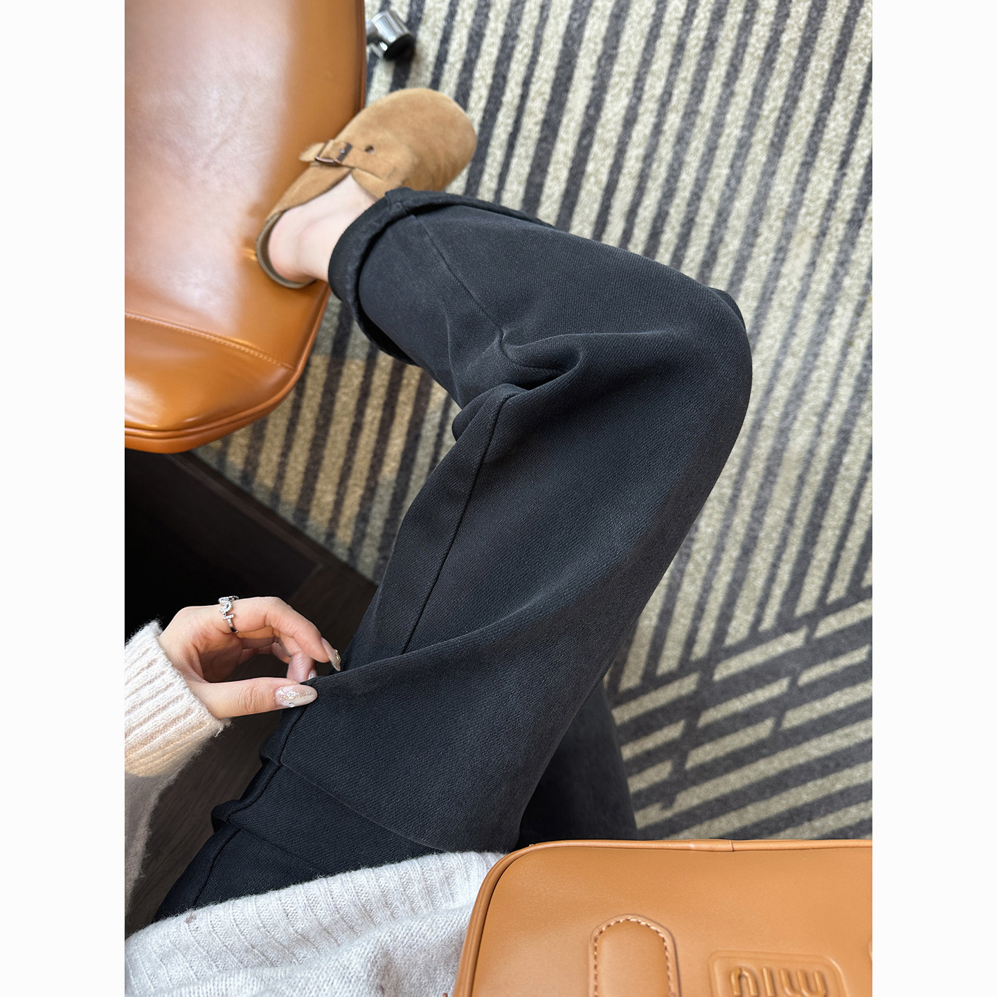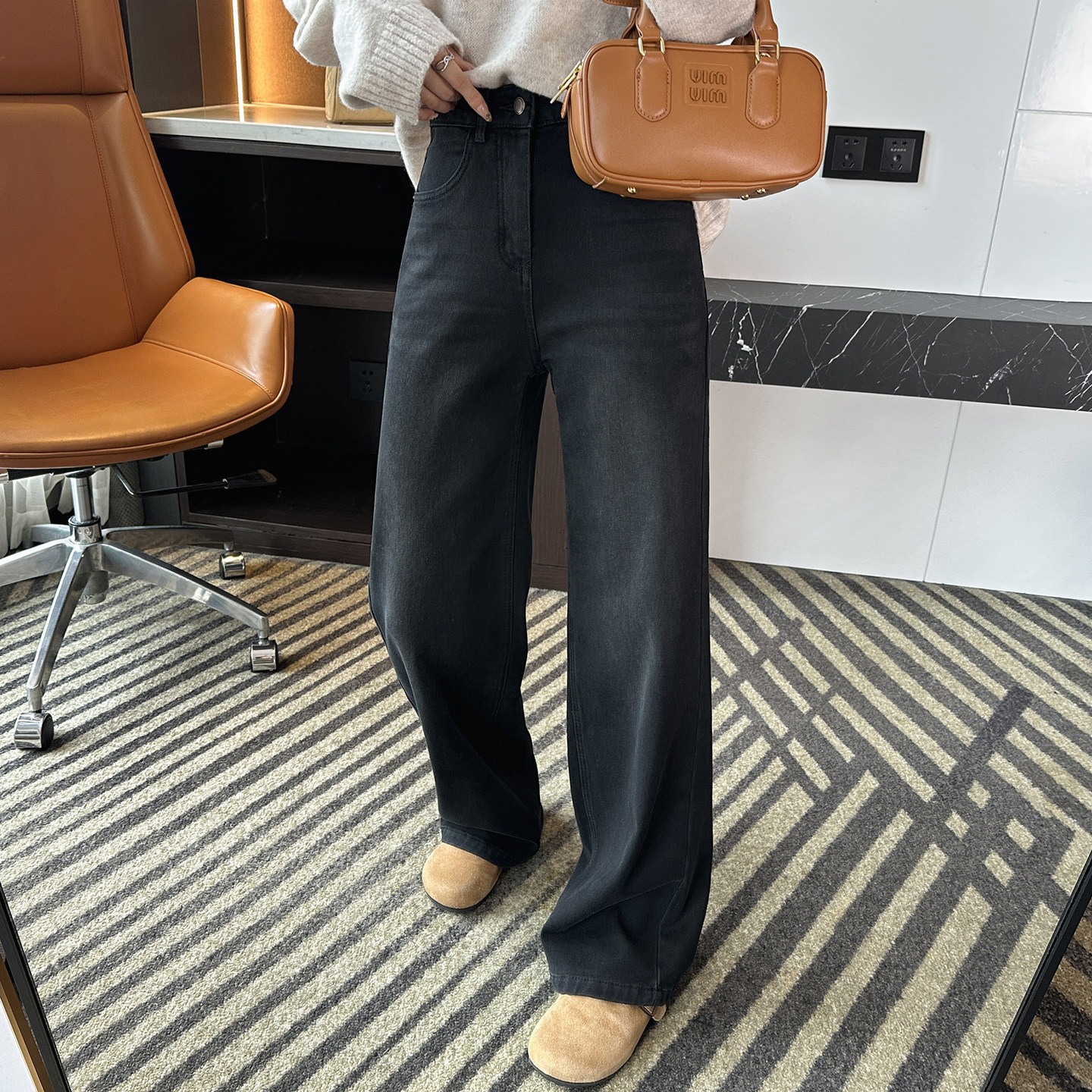 长腿魔法裤~!加绒保暖窄版阔腿牛仔裤女秋冬新款宽松直筒拖地裤