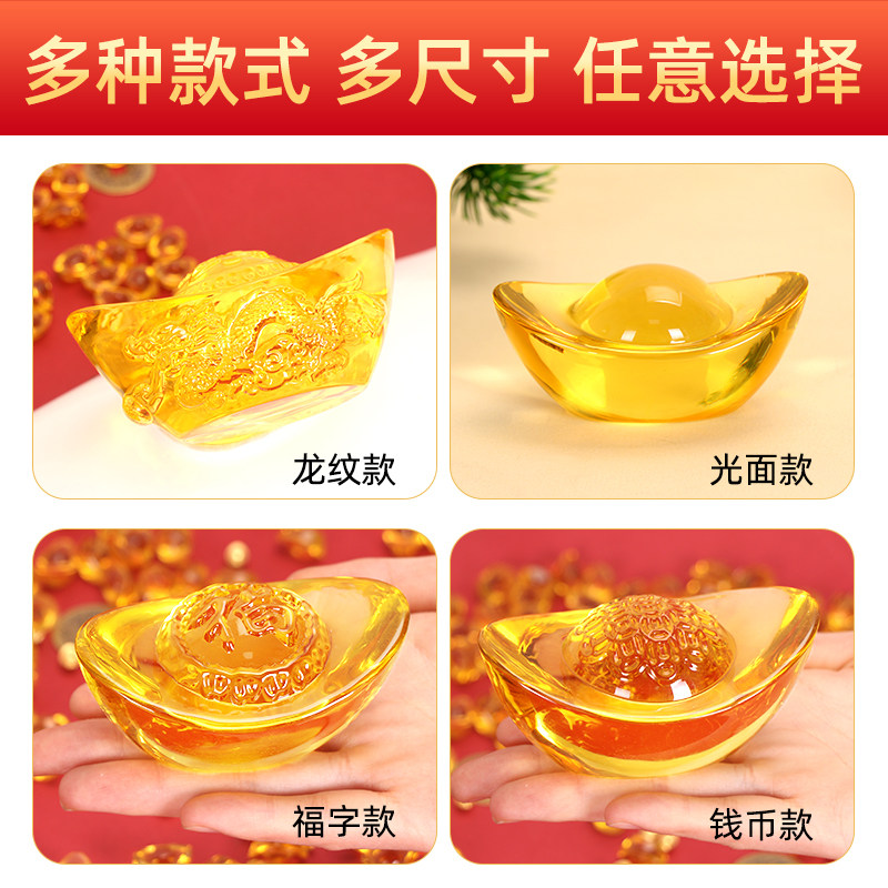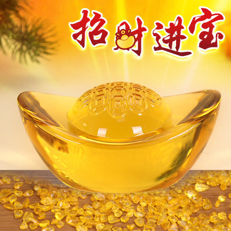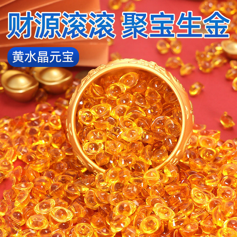 黄水晶元宝摆件琉璃小金元宝招财聚宝盆碎石装饰开业乔迁新居礼物