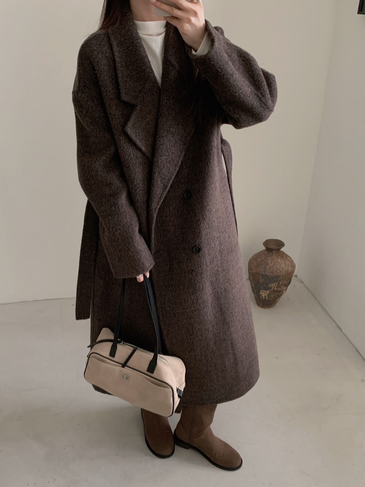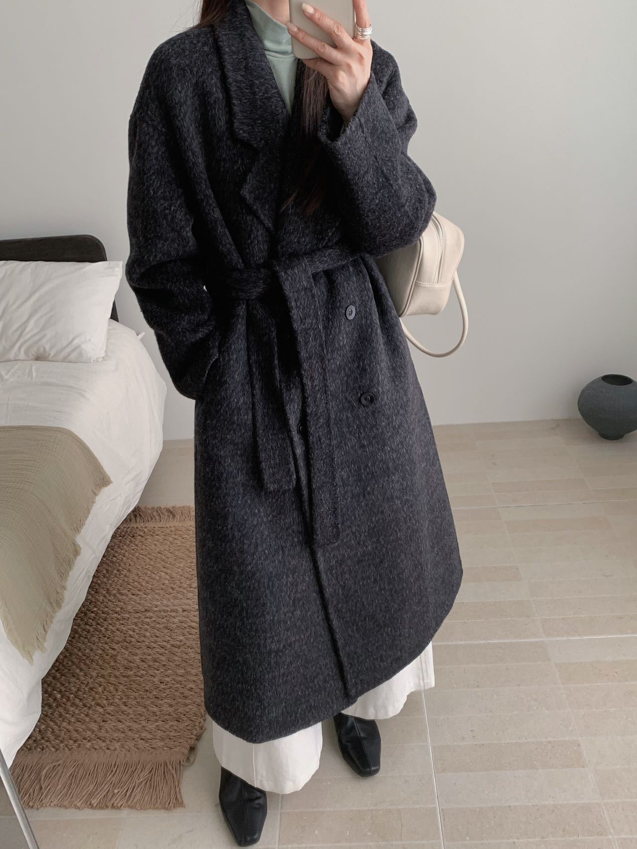 2025秋冬新款韩系气质系带双面羊绒大衣女中长款过膝羊毛呢外套厚