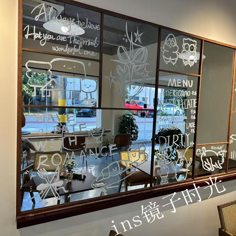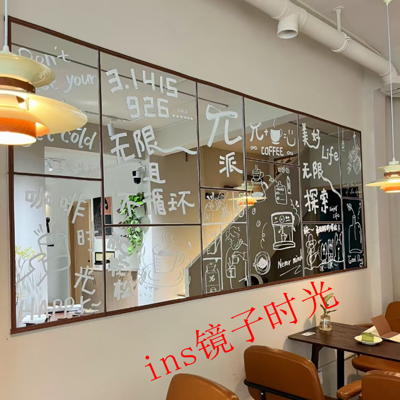 奶茶咖啡店墙面装饰镜中西餐厅横挂镜子简约创意网红打卡涂鸦镜子