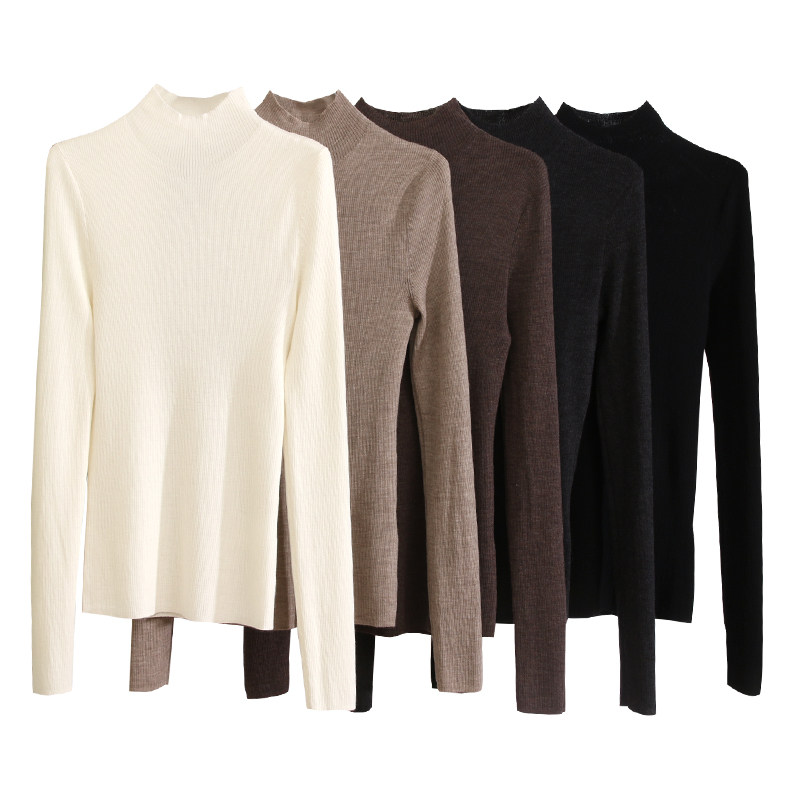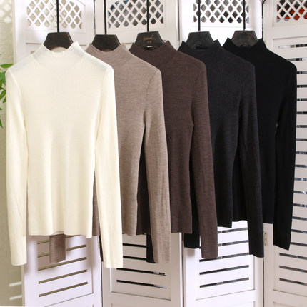 进口羊毛半高领长袖针织打底衫冬