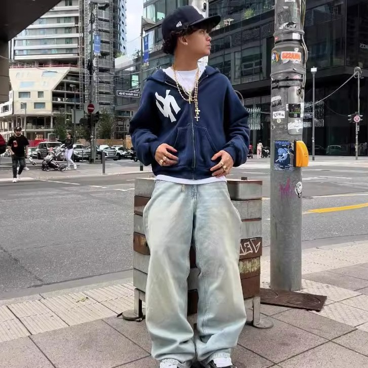 春秋季oversize美式复古华棉加绒连帽卫衣 外套男女情侣宽松上衣