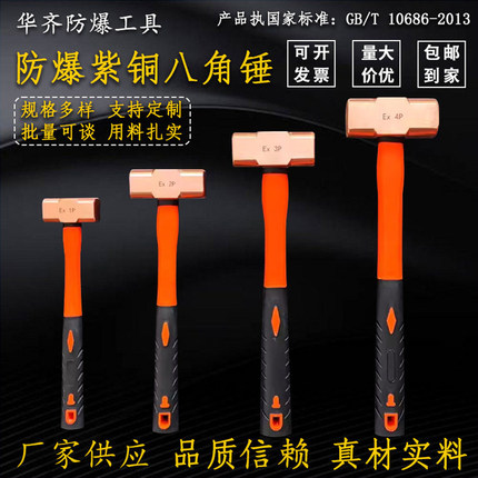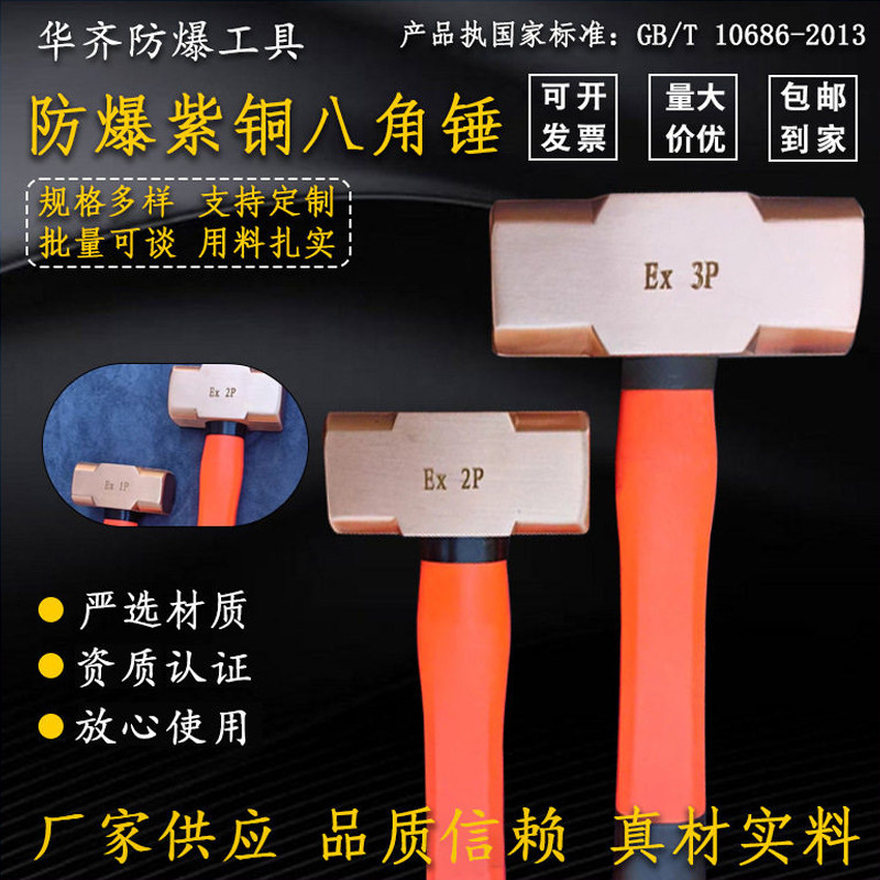 铜锤防爆紫铜八角锤纯铜塑柄锤无火花防磁防静电铜榔头1磅8p20p