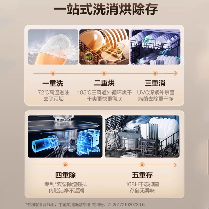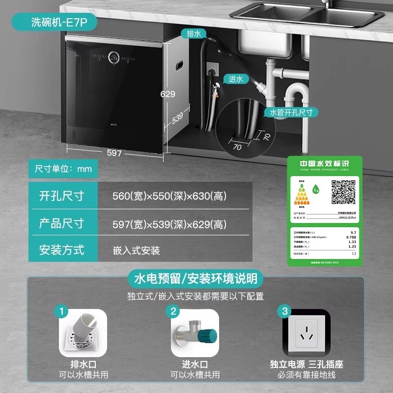 华帝洗碗机嵌入式灶下全自动一体14套消毒柜智能小型家用E7Pro