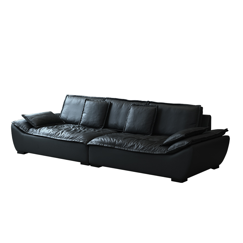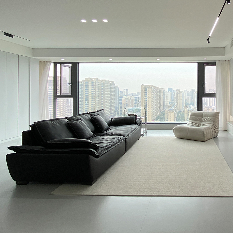 意式极简真皮沙发大坪数客厅头层牛皮高靠背直排黑色帆船新款沙发