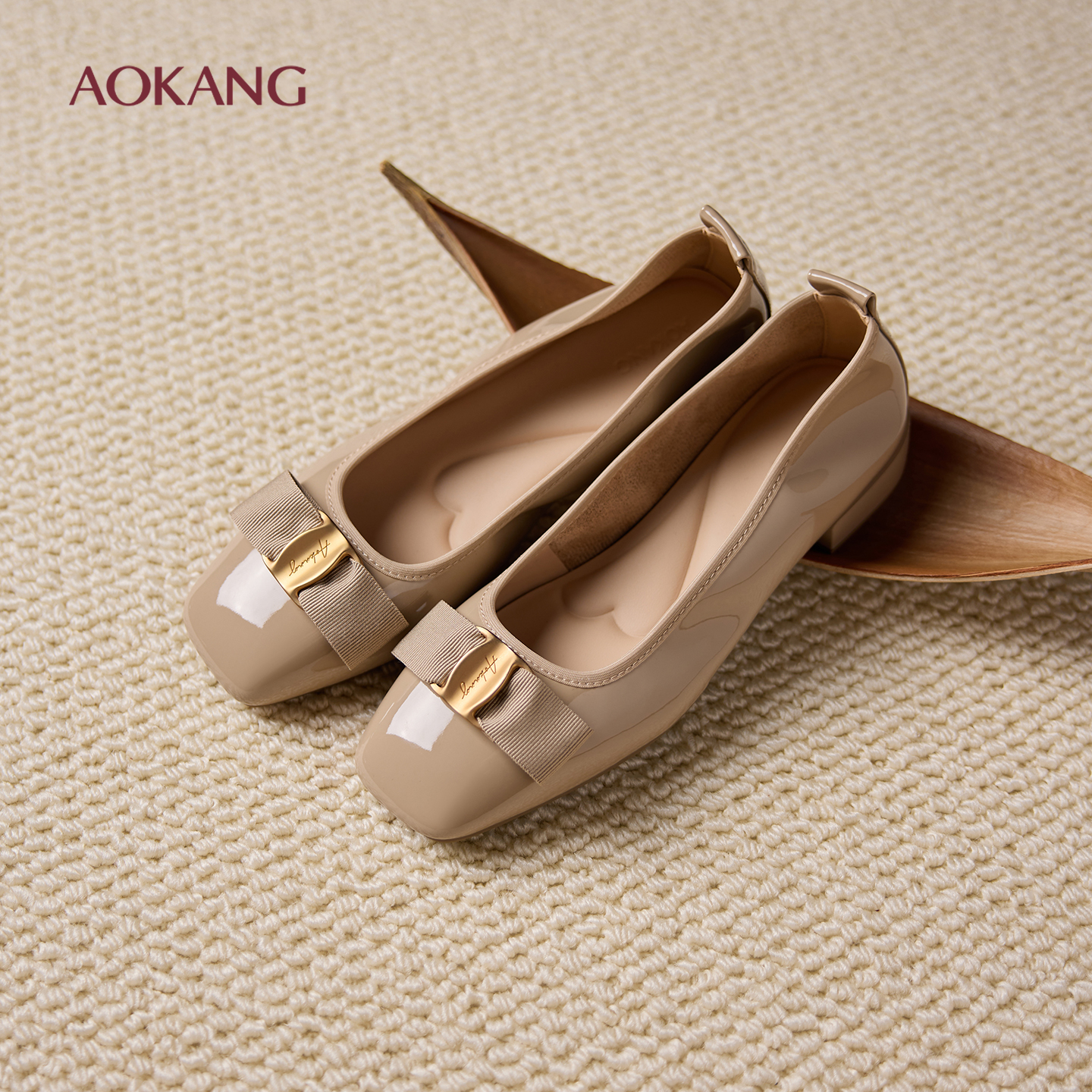 奥康 女鞋2025秋季新款蝴蝶结通勤红色浅口平底单鞋一脚蹬