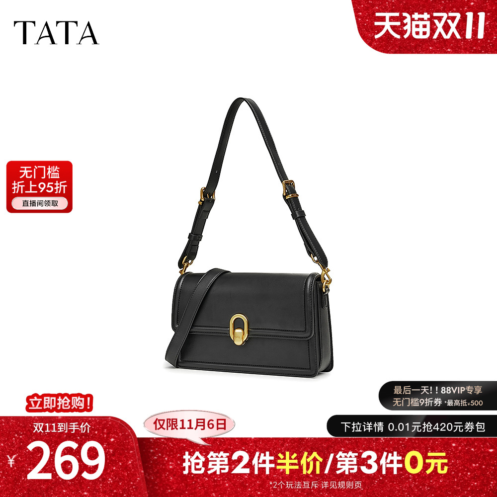 TATA他她气质通勤小方包女包包休闲黑色单肩包斜挎包新款X3363DX4
