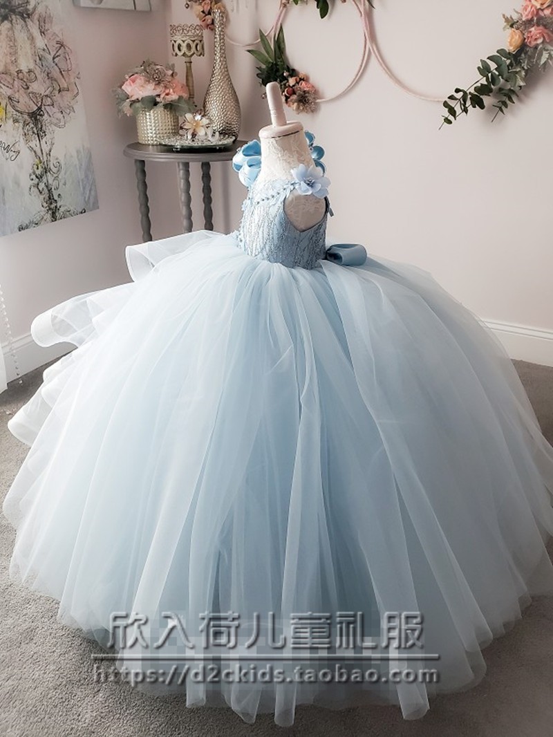 儿童浅蓝色甜美长款公主裙女童晚礼服主持钢琴晚宴演出礼服
