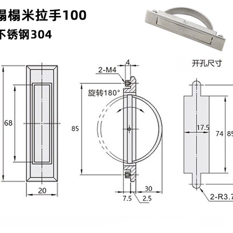 榻榻米隐藏拉手隐秘平面拉手旋转式暗装嵌入柜隐形把手不锈钢304