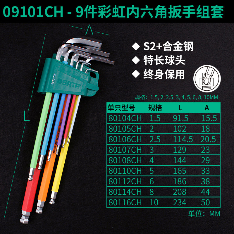 世达内六角扳手套装加长球头特长梅花内六D方螺丝刀0910709101万