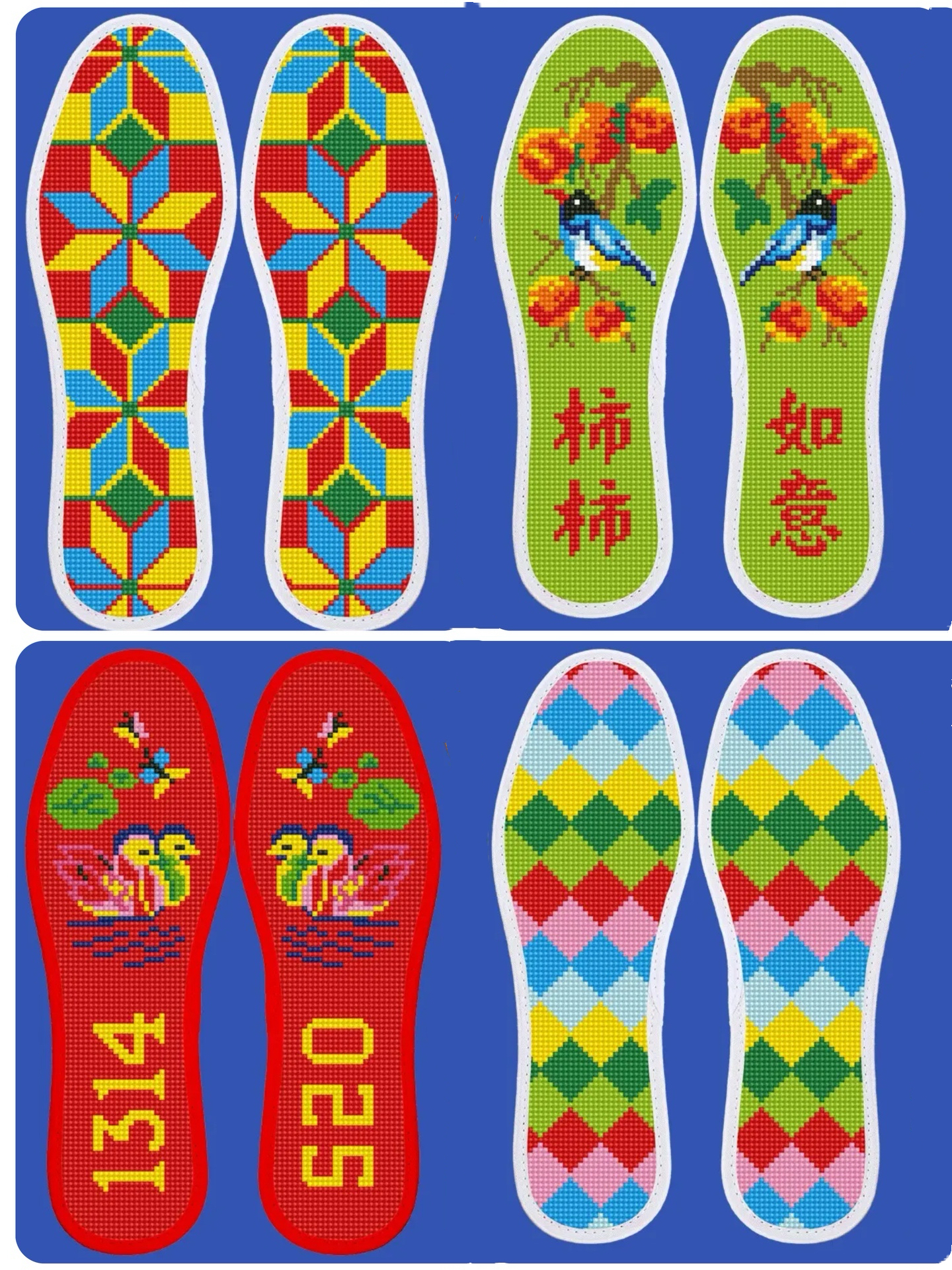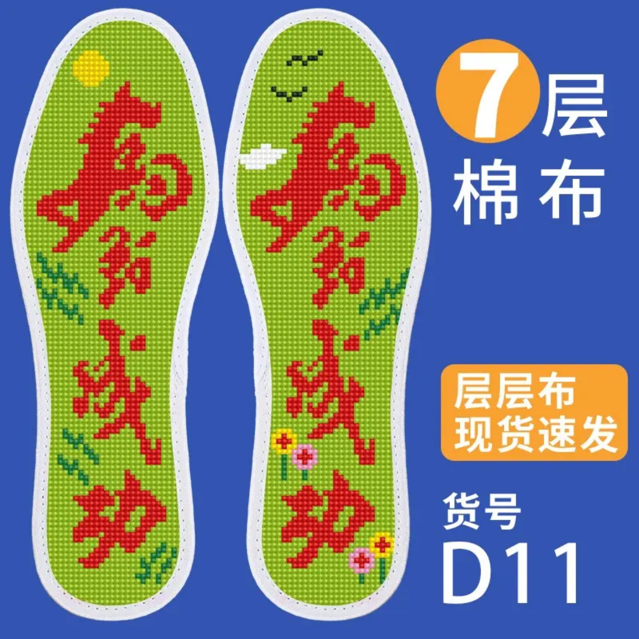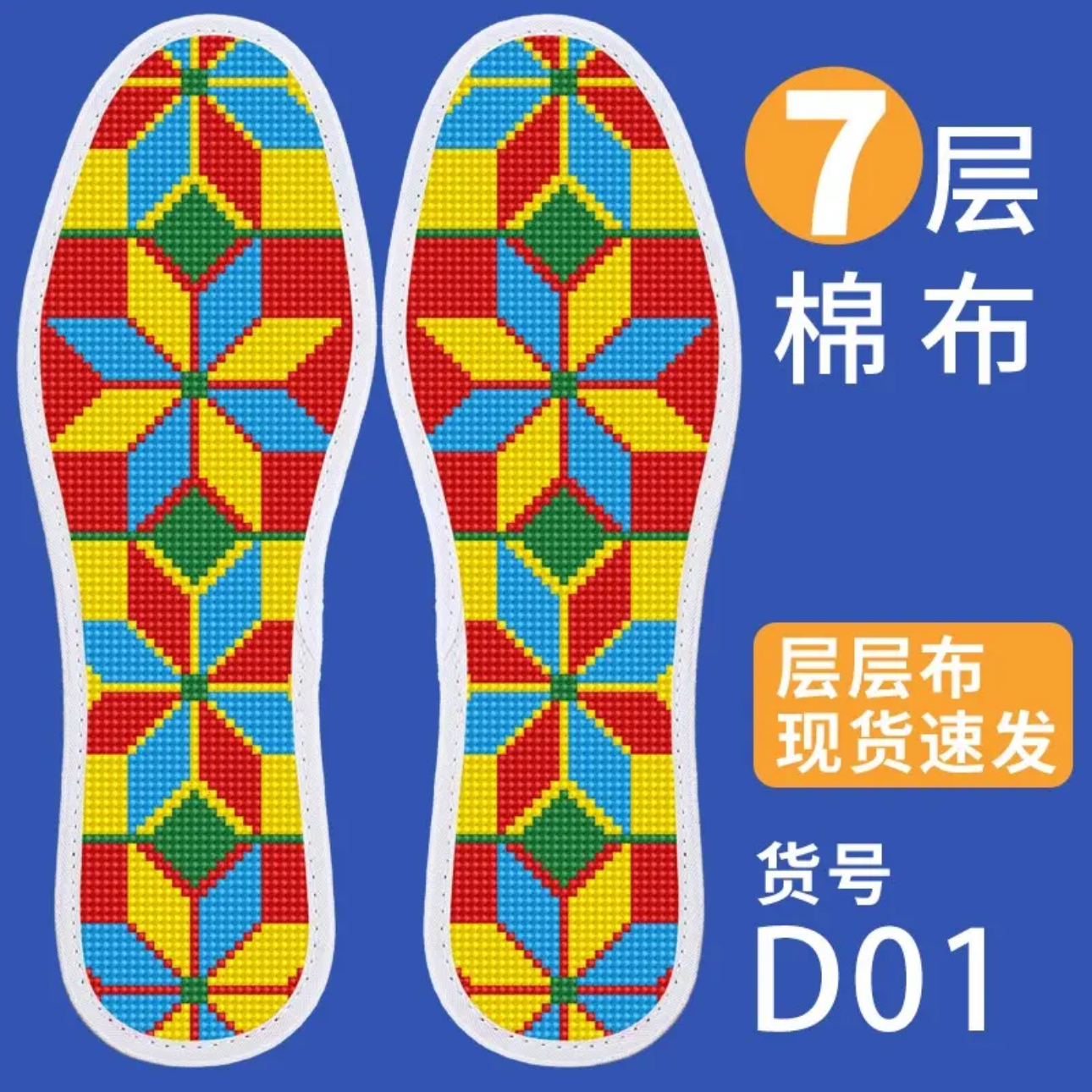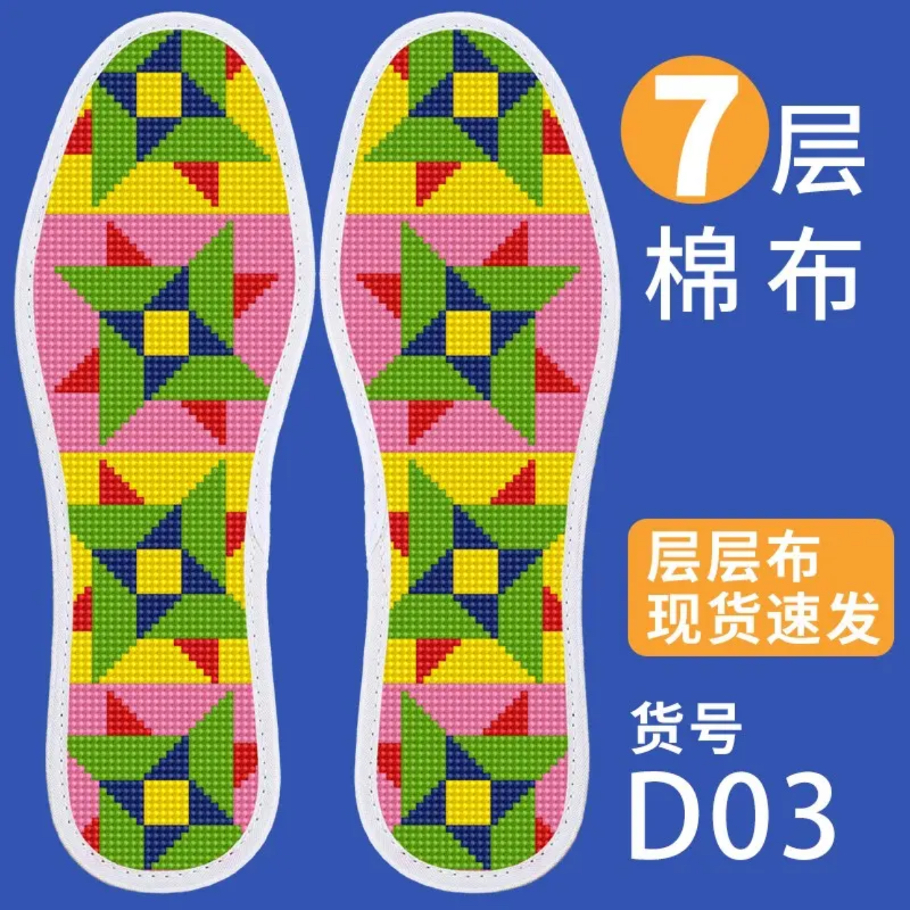 「大码」买二送一七层棉布十字绣鞋垫印花加厚自己绣半成品纯棉布
