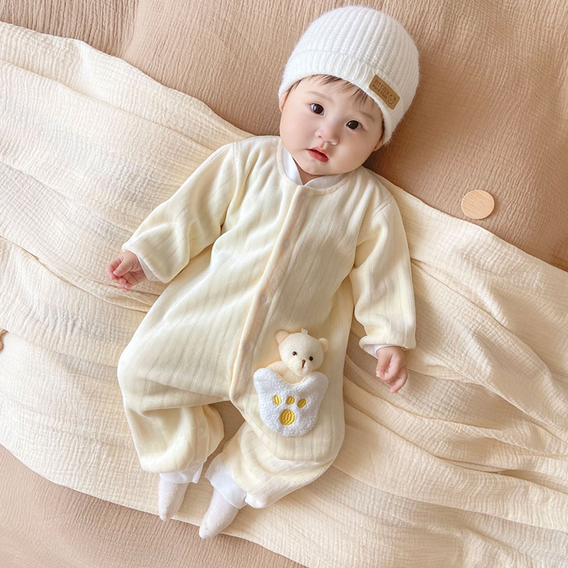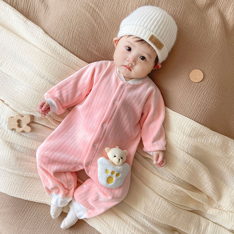 婴儿连体衣新生儿秋冬加绒保暖加厚衣服宝宝长袖无骨哈衣秋季新款