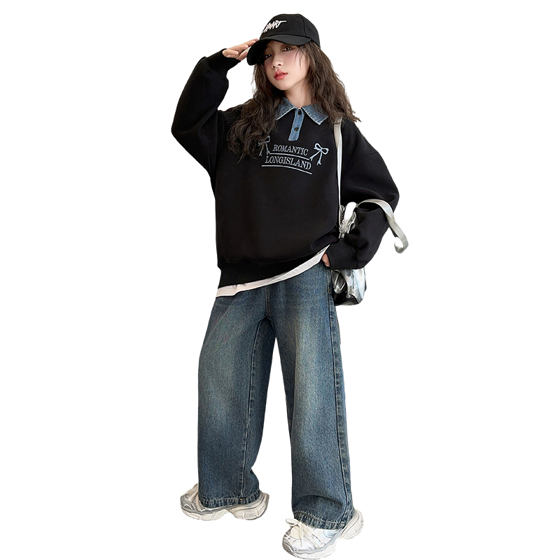 女童秋装卫衣套装2025新款洋气女大童秋冬季加绒上衣儿童阔腿裤子