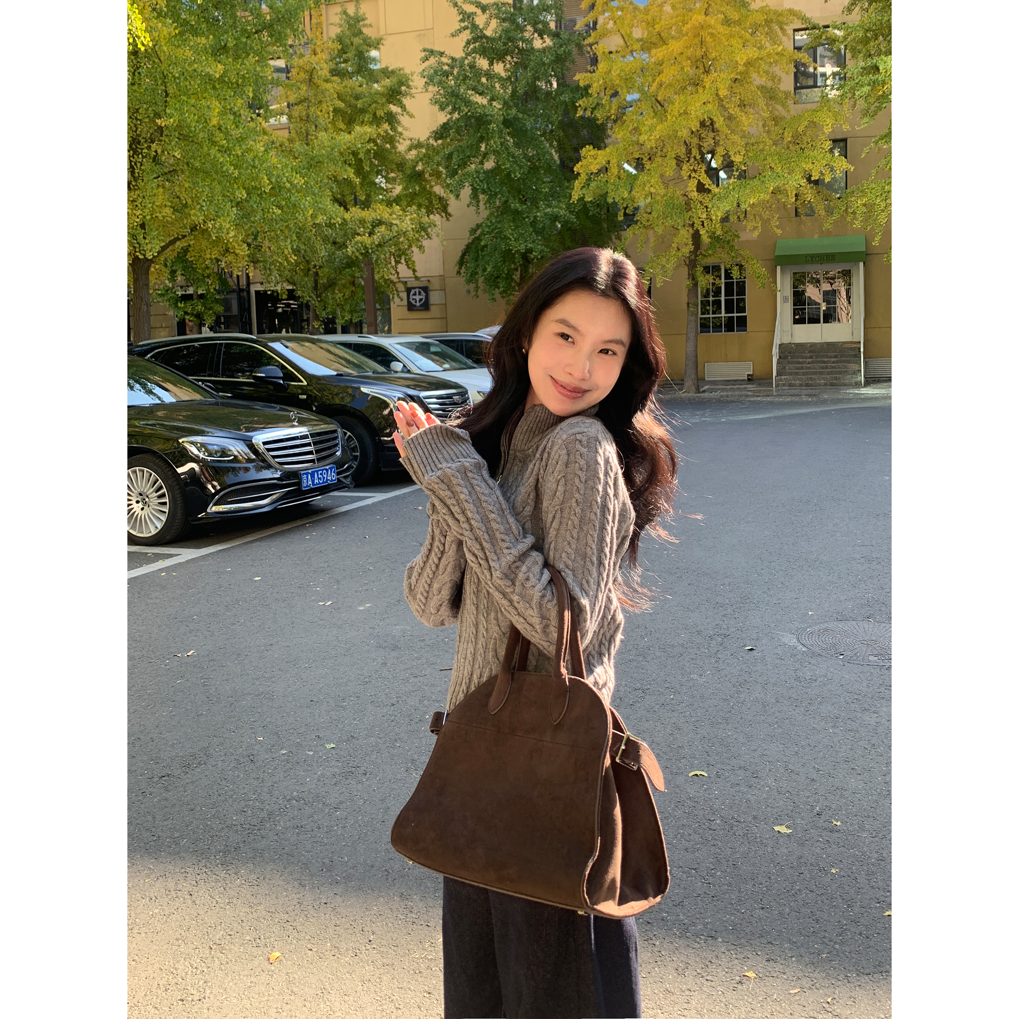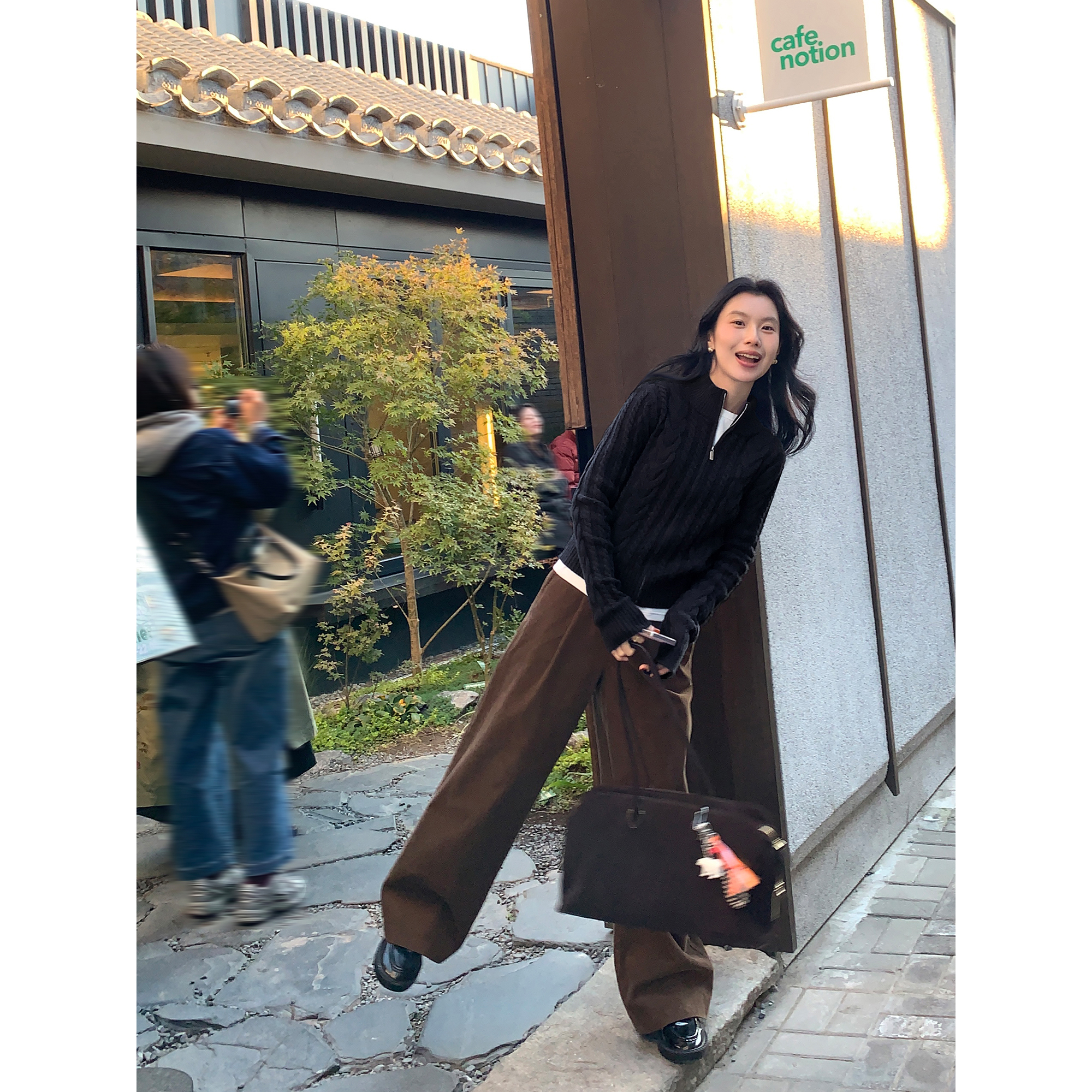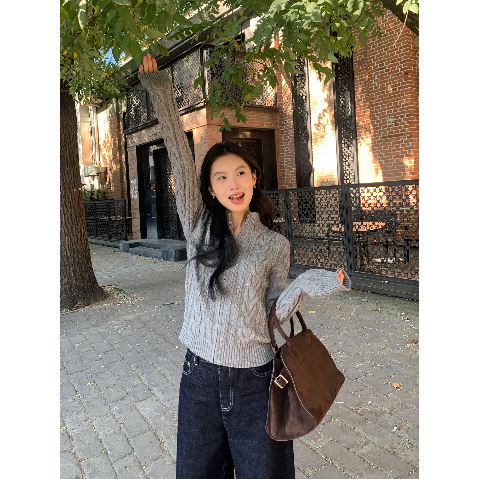 MULVAN 麻花拉链毛衣开衫女秋冬复古宽松短款加厚红色针织上衣