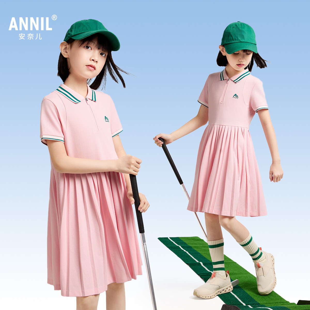 安奈儿童装女童运动风短袖连衣裙2025夏百褶裙运动裙网球户外裙子