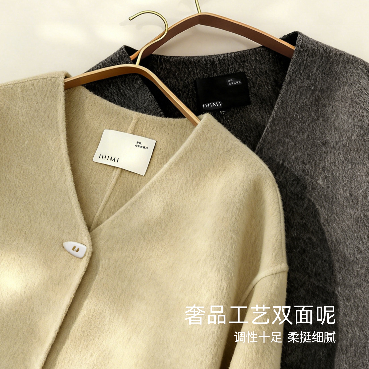 IHIMI海谧羊驼毛双面呢羊毛大衣