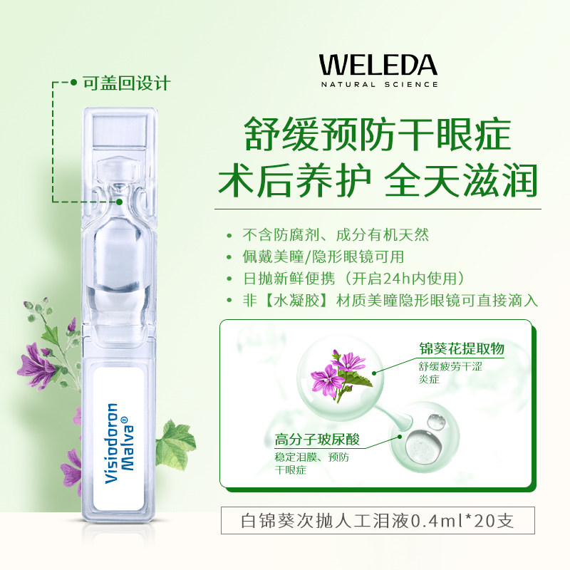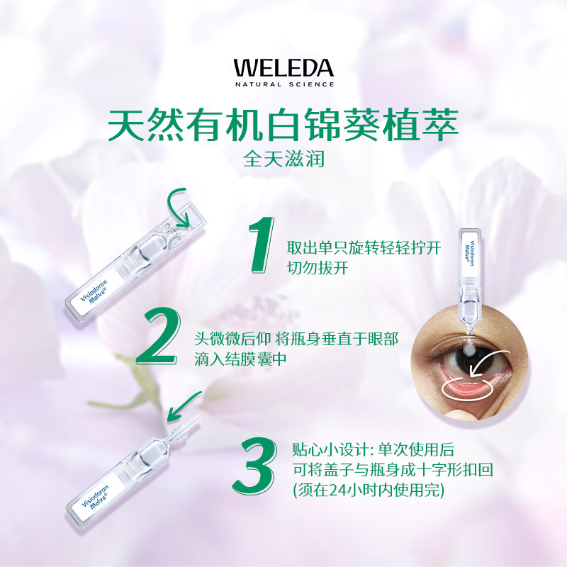 Weleda维蕾德白锦葵滴眼液玻璃酸钠儿童成人眼药水缓解眼干涩疲劳