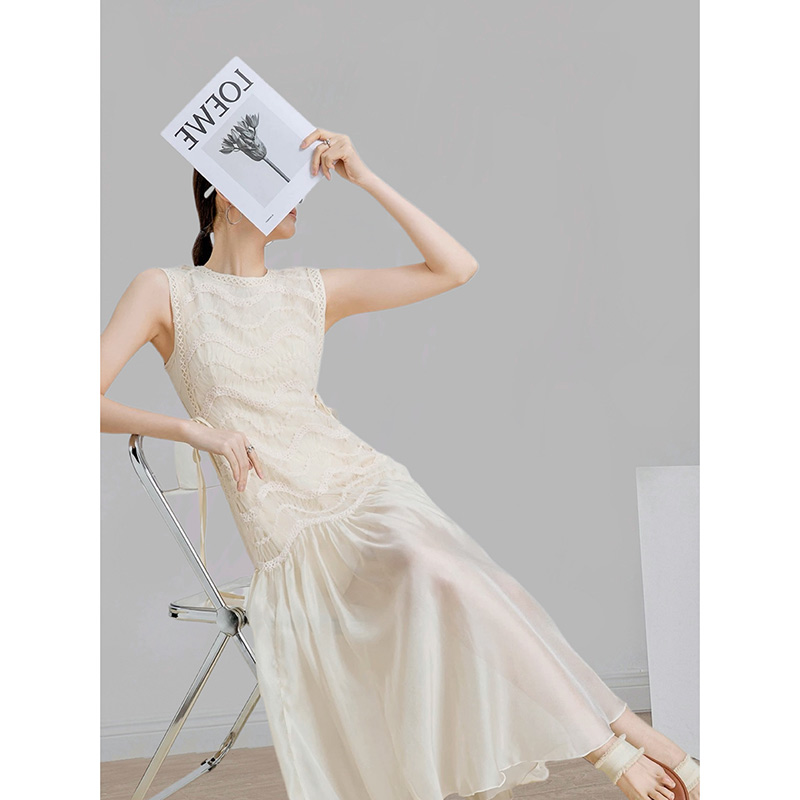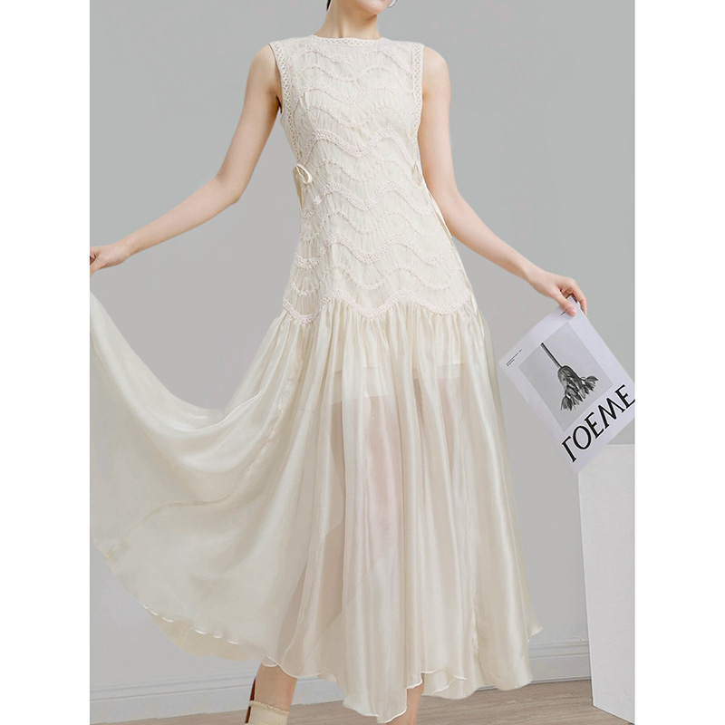 高级感无袖圆领气质连衣裙女夏季新款独特超好看海边度假蕾丝长裙
