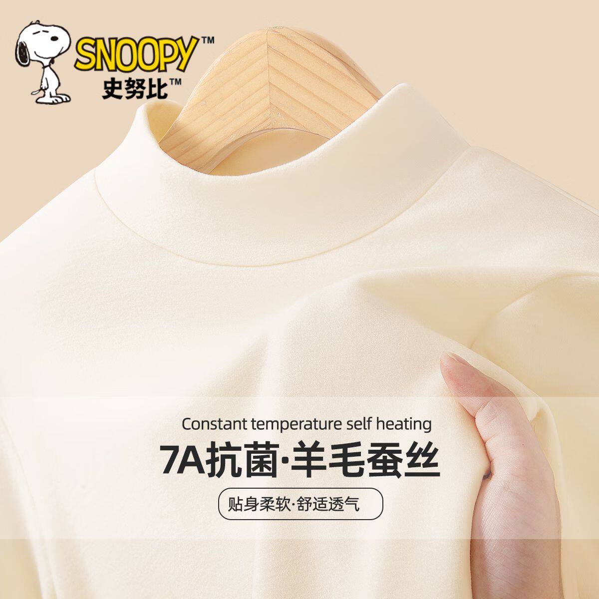 史努比男童秋季保暖内衣a类羊毛蚕丝保暖内衣长袖t恤秋冬女童秋衣