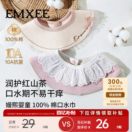 嫚熙红山茶口水巾婴儿小方巾婴儿新生防吐奶花瓣围嘴刷牙防水围兜