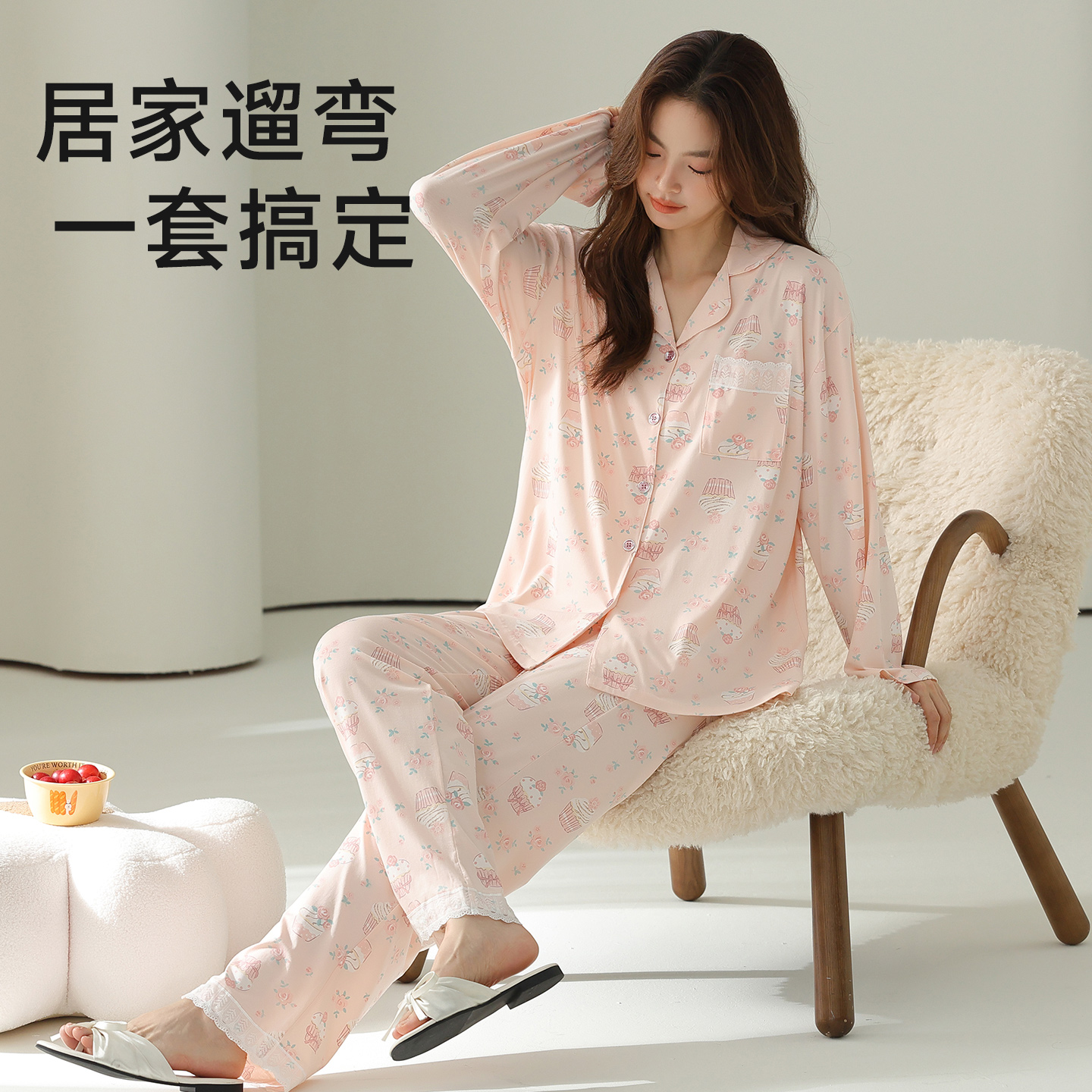 恒源祥女士睡衣女款秋2025新款长袖长裤开衫居家家居服套装高级感