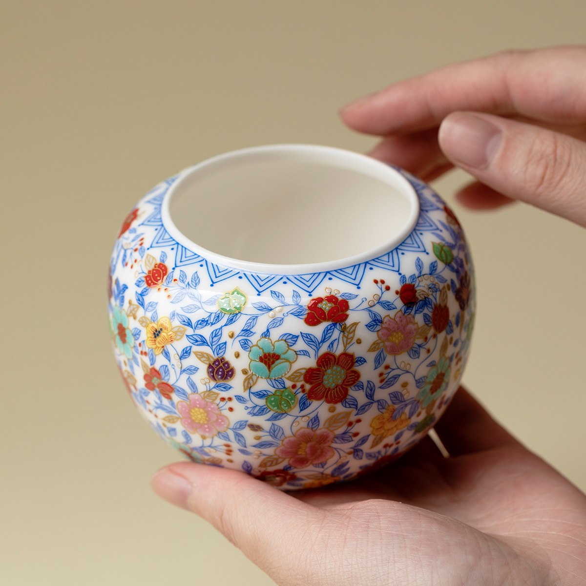 里作 青花斗彩万花建水高颜值陶瓷粉彩水盂茶具精致茶洗茶道配件