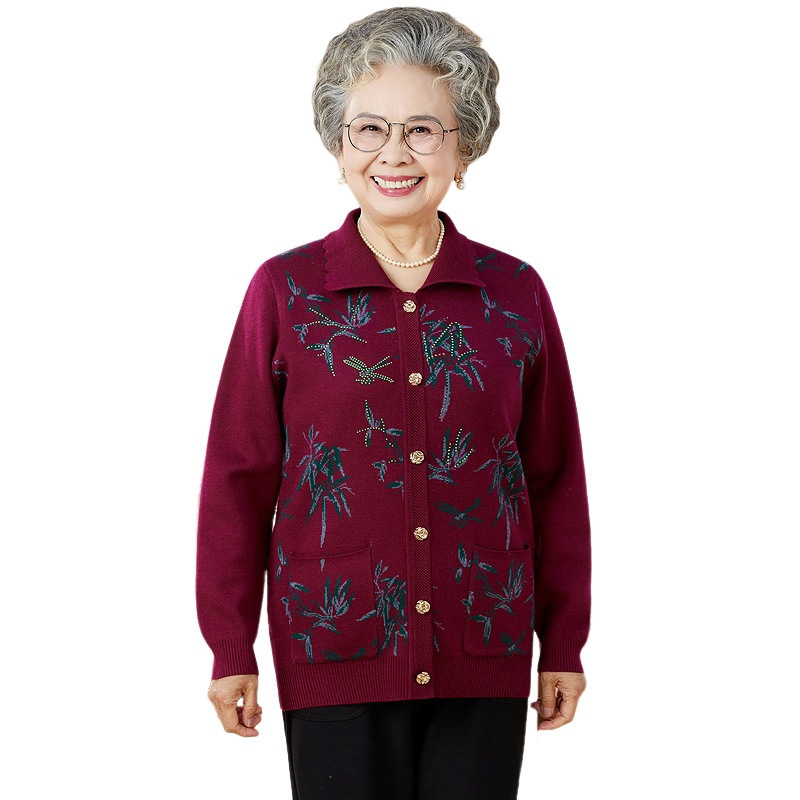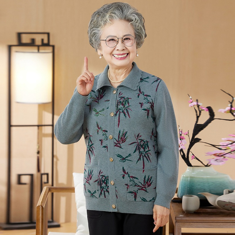 中老年人开衫针织外套奶奶老太太秋冬带口袋妈妈毛衣老人翻领衣服