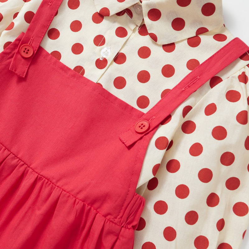 女童学院风背带裙套装春秋儿童韩版波点衬衫女孩吊带裙两件套港风