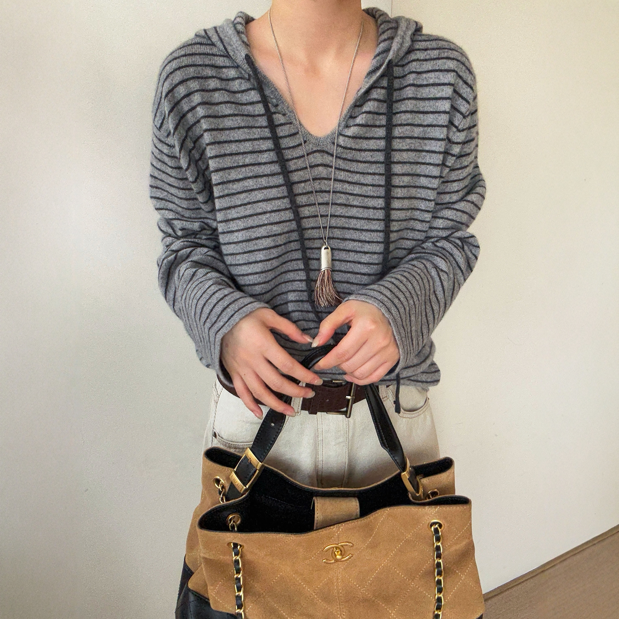 撞色条纹连帽细羊毛针织衫女欧洲站2025秋装新款欧货女装打底衫潮