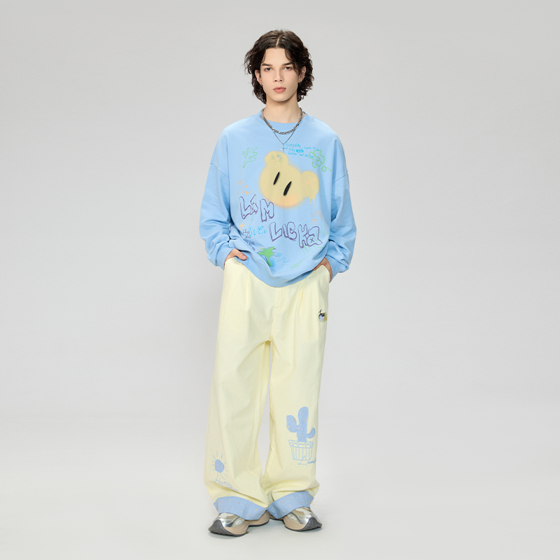 LAMLICKA仙人掌裤子直筒阔腿卫裤