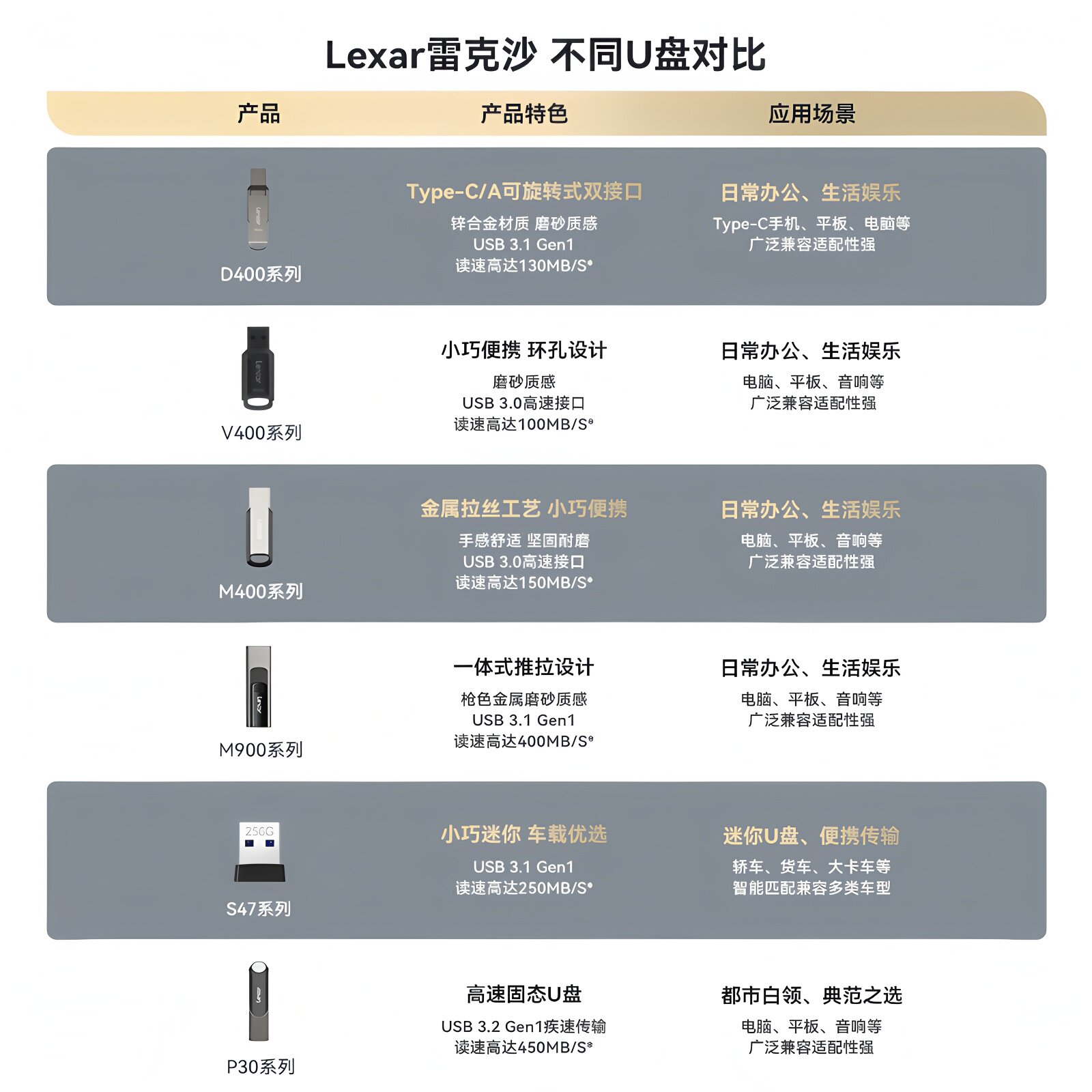【自营】雷克沙Lexar优盘M900高速U盘128G枪色磨砂质感推拉一体