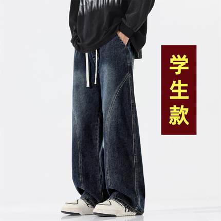 秋冬新款12大童加厚裤子男孩13初高中学生15青少年加绒直筒牛仔裤