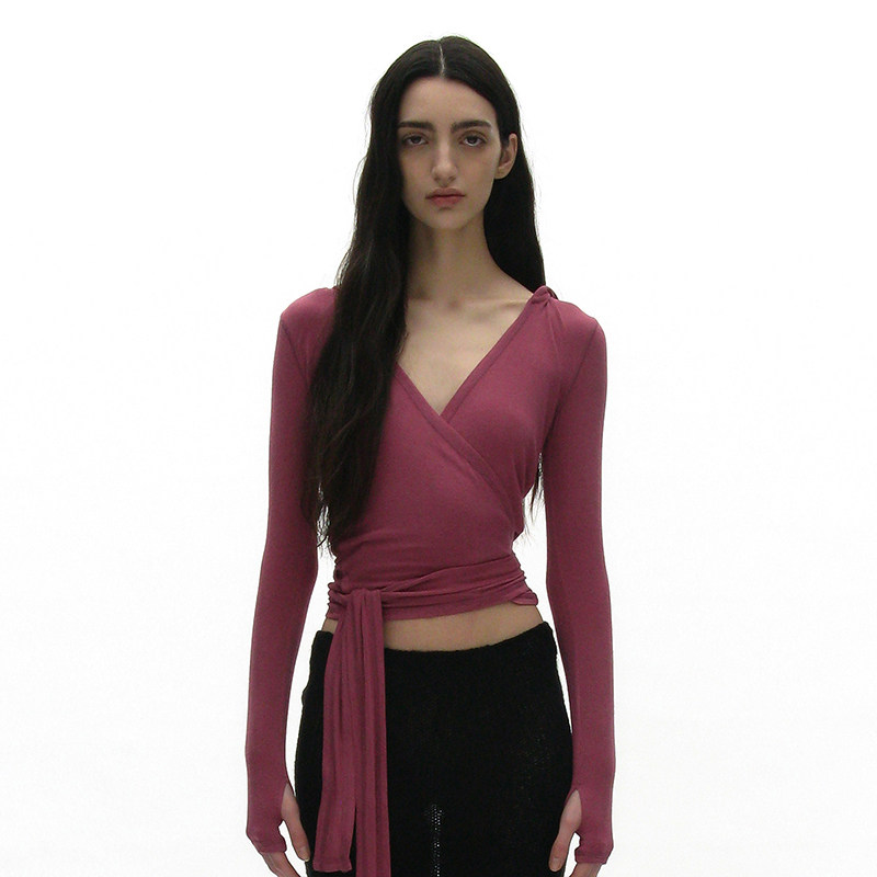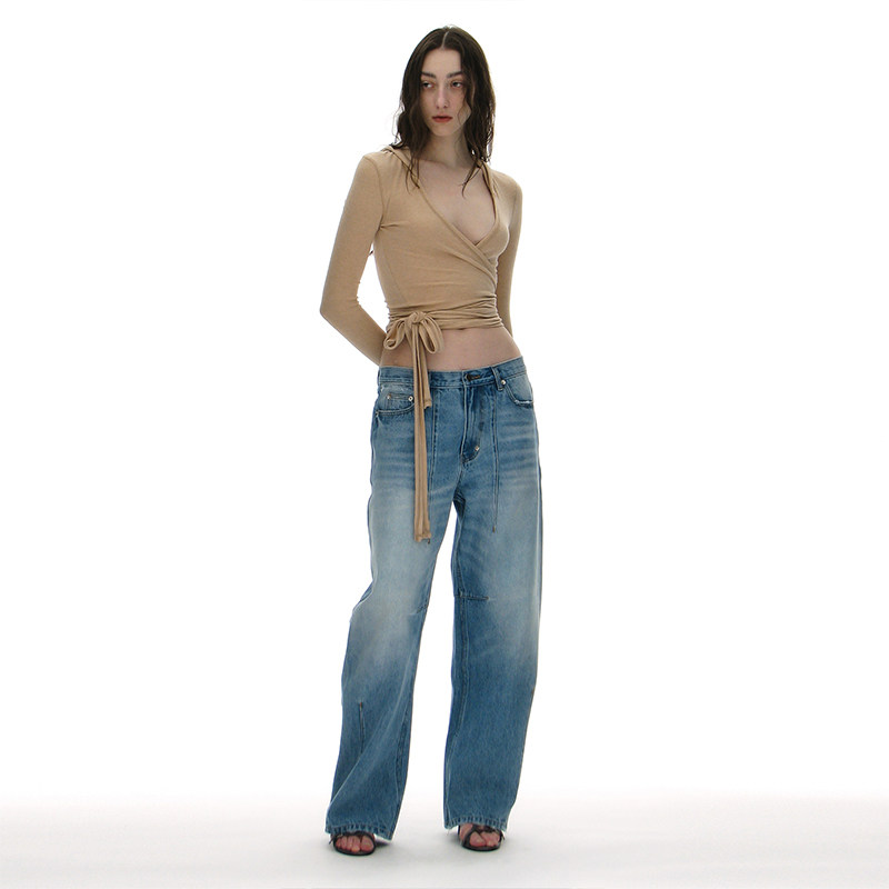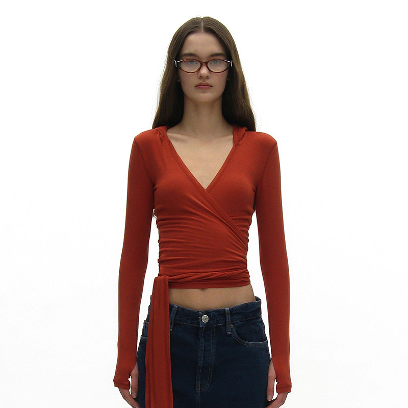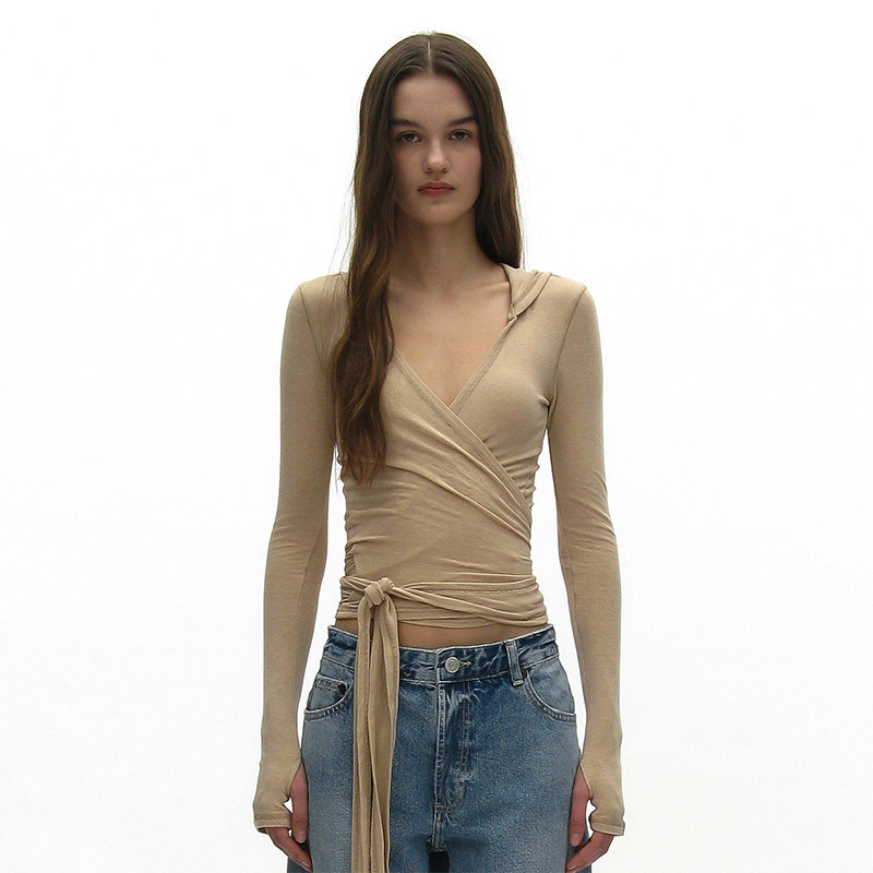 韩国正品 PARTIMENTO 2025春夏新款国内现货性感v领绑带连帽T恤