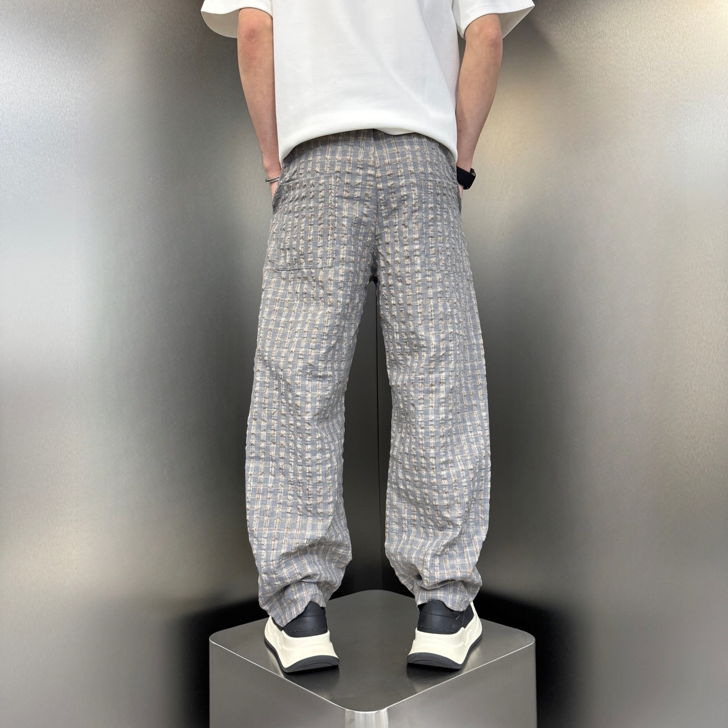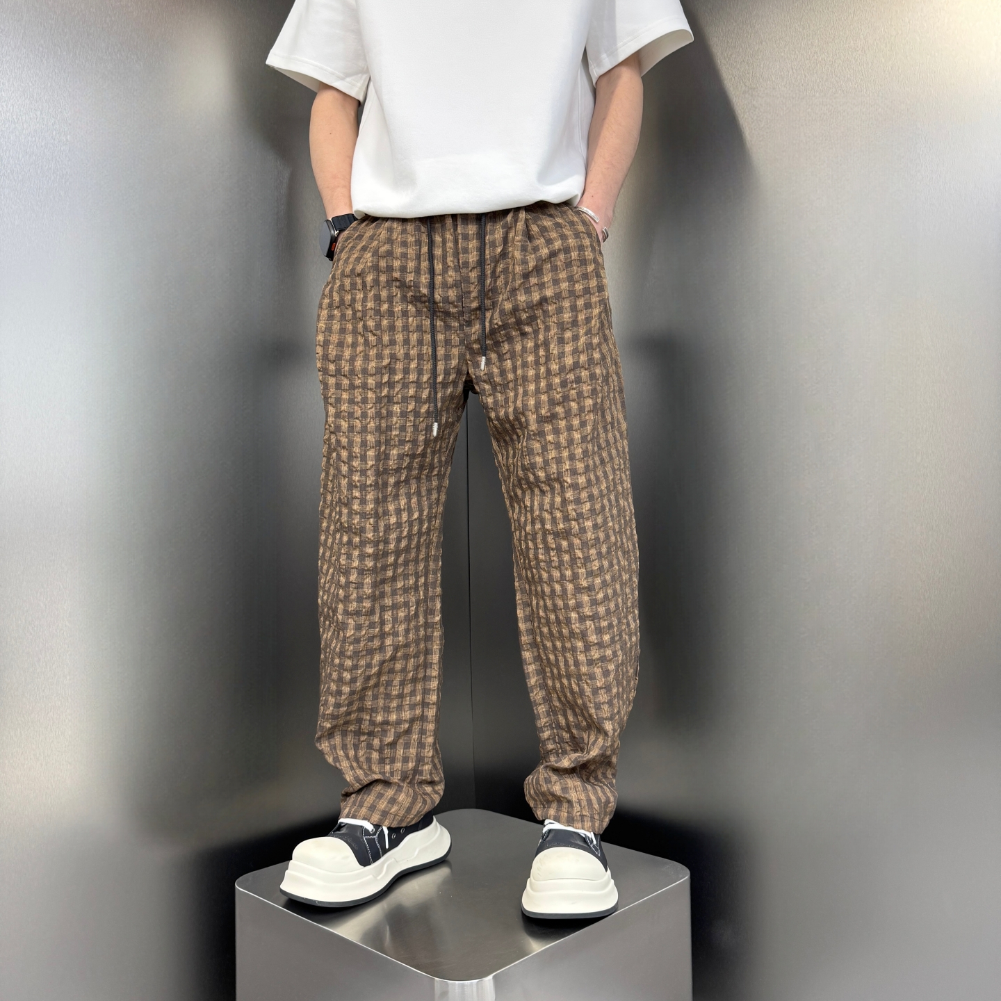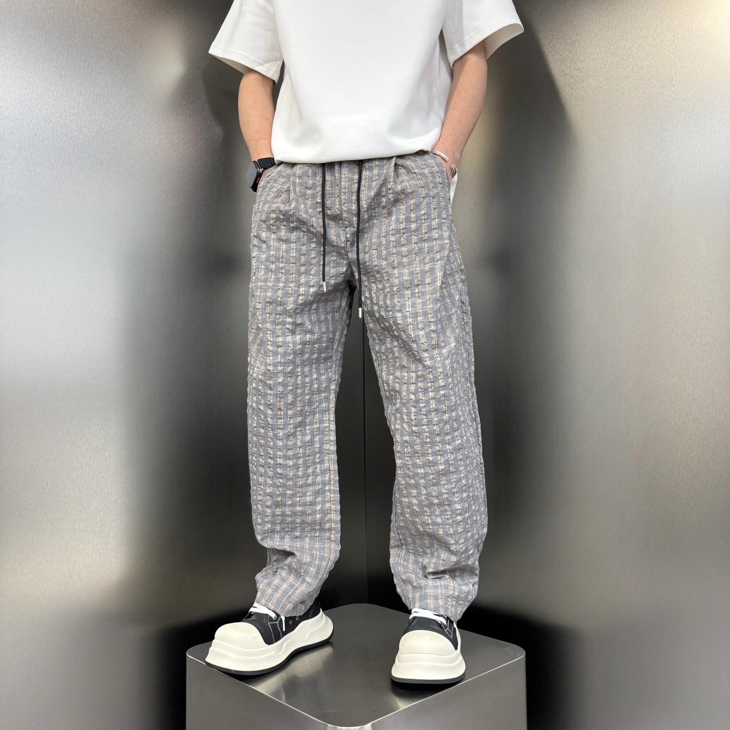 2025夏季薄款男士潮流韩版痞帅格子裤纯色百搭宽松直筒裤户外男士