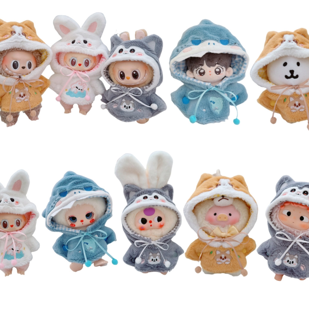 17cm拉布布labubu娃衣10cm棉花娃娃大笨狗自嘲熊毛绒动物斗篷披肩