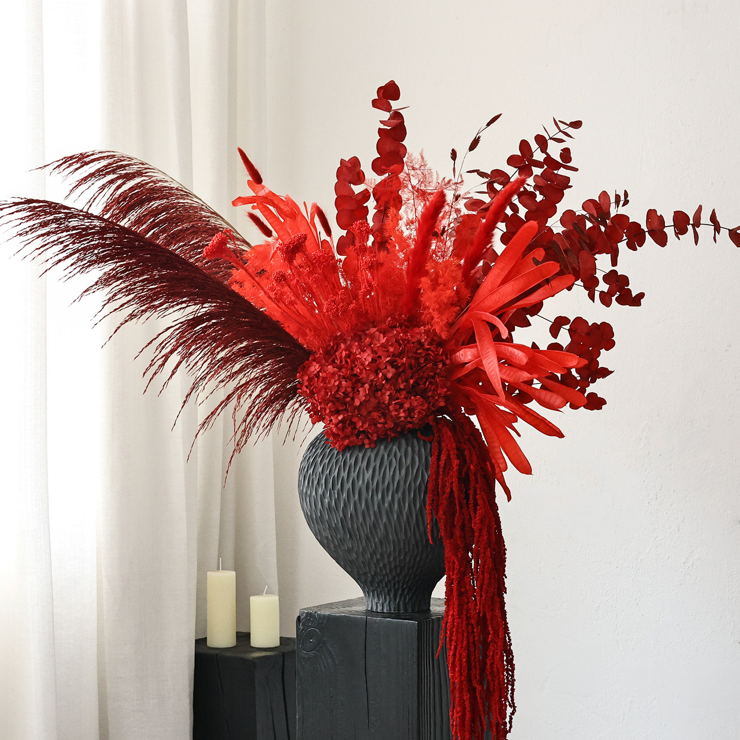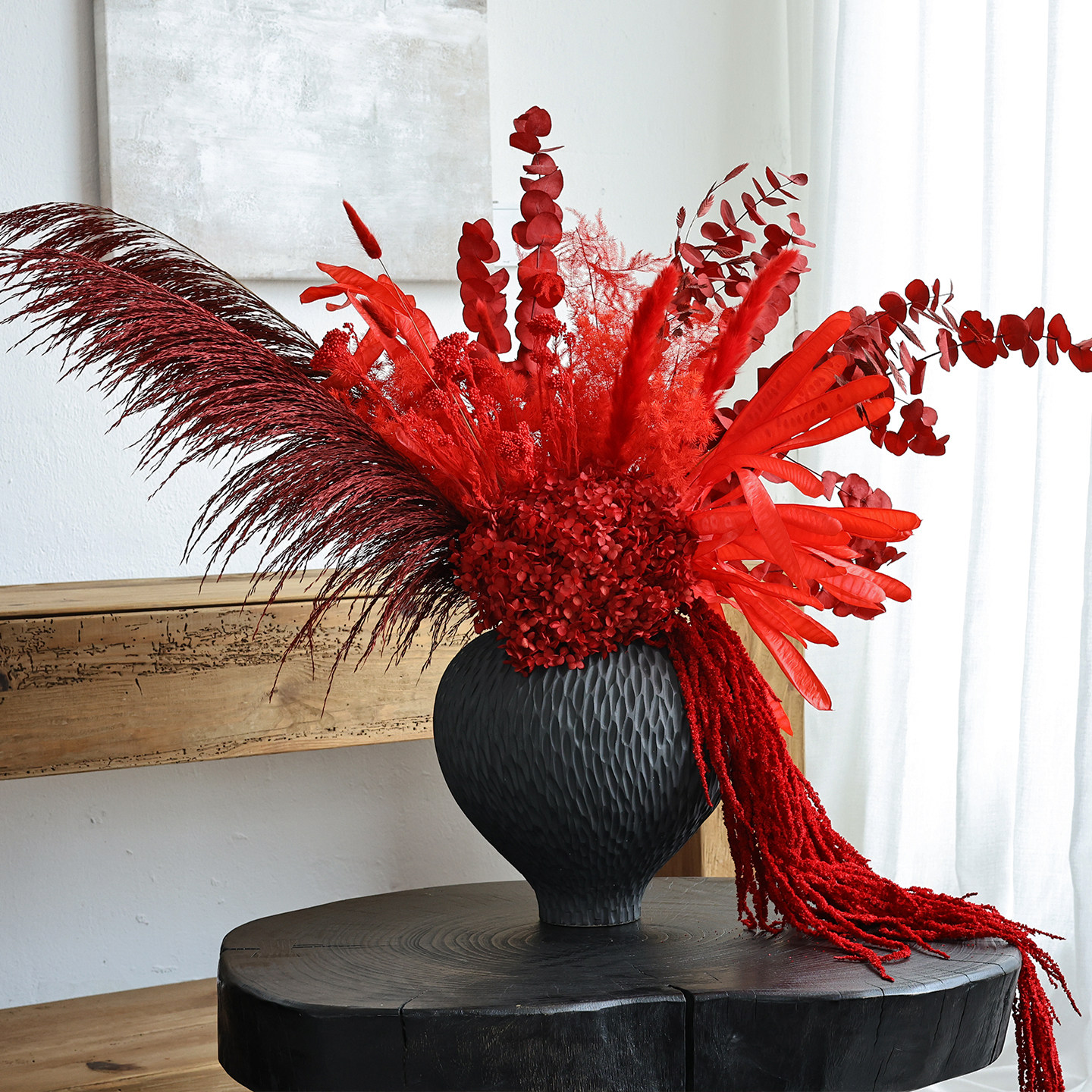 红色喜庆干花花束永生花客厅婚礼开业布置新年装饰品摆件花瓶插花