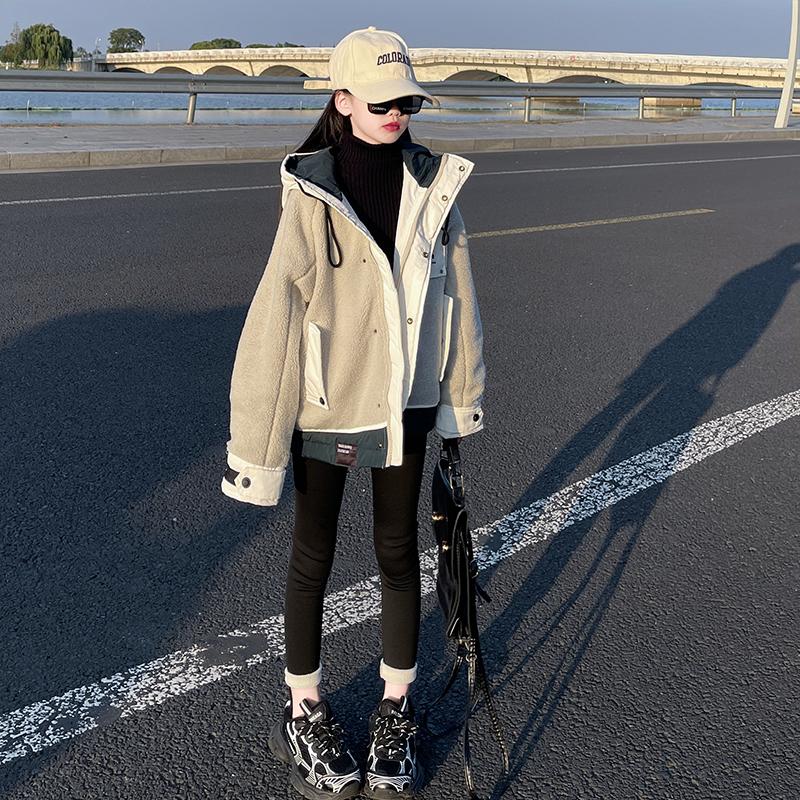 女童毛毛衣外套秋冬装2025新款儿童大童冬季韩版夹棉加厚连帽上衣