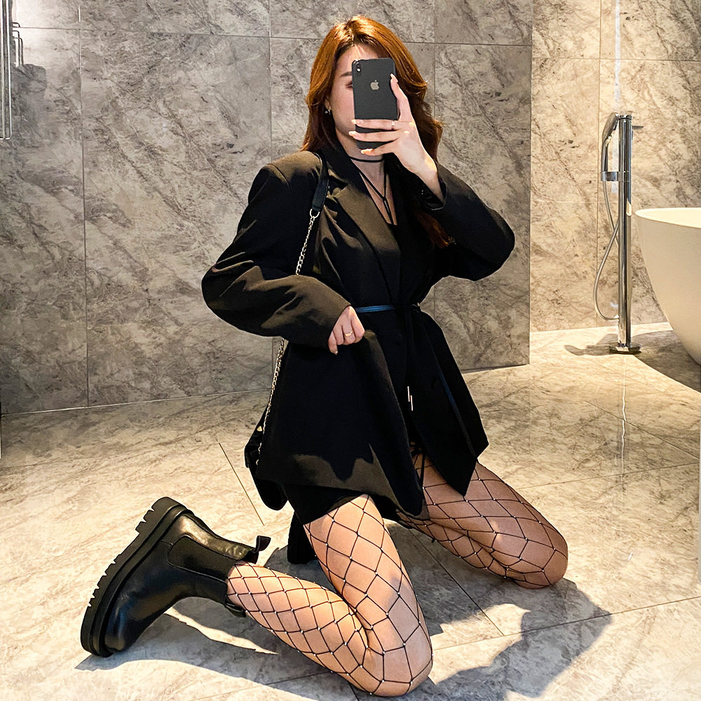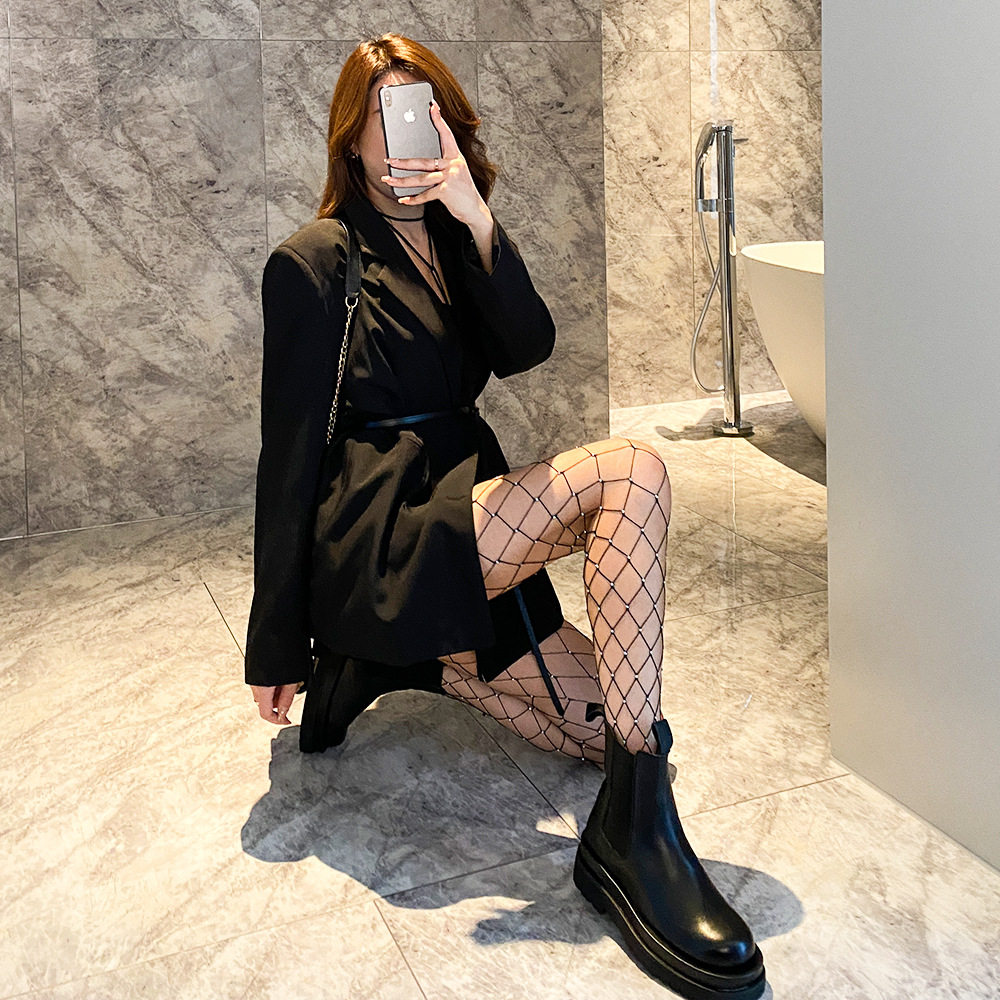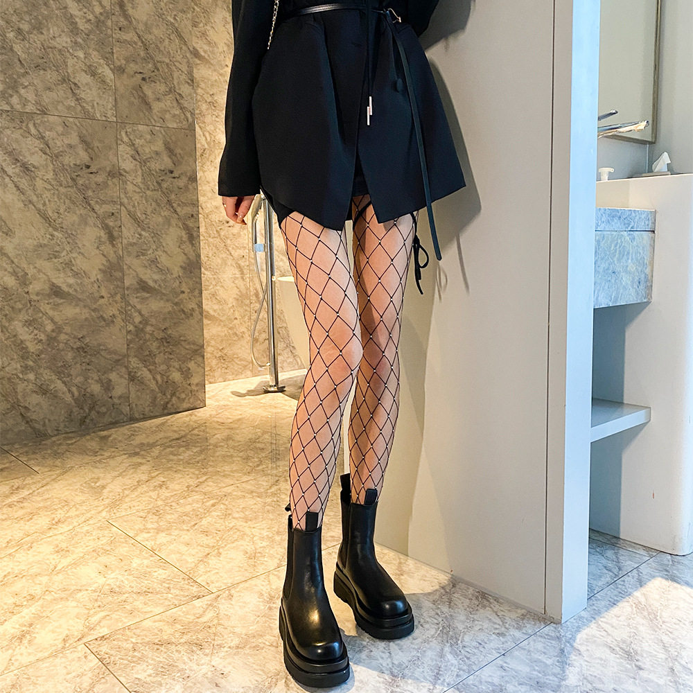 带钻石烫钻潮流蹦迪亮晶晶性感风渔网袜手动烫钻大小网格袜