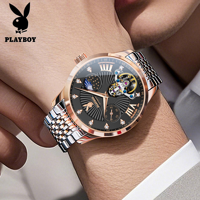 正品镂空男士手表男款机械表全自动防水钢带时尚潮流腕表品牌十大